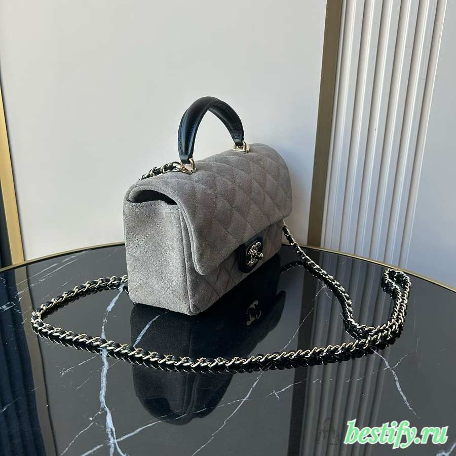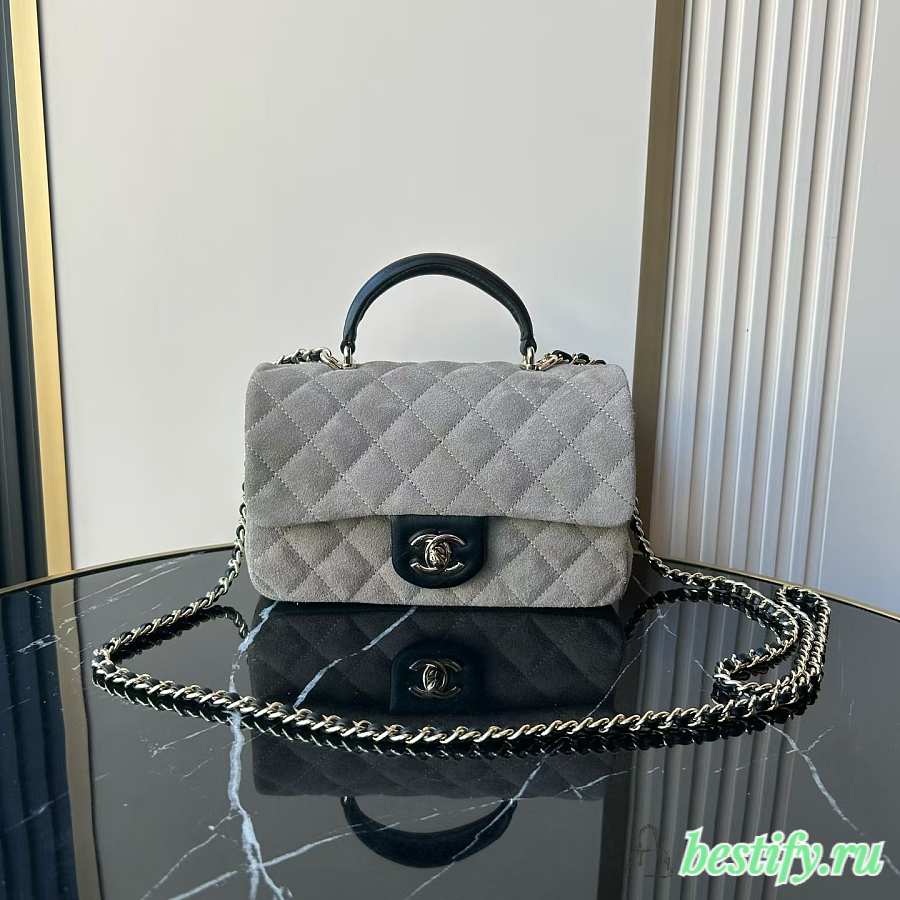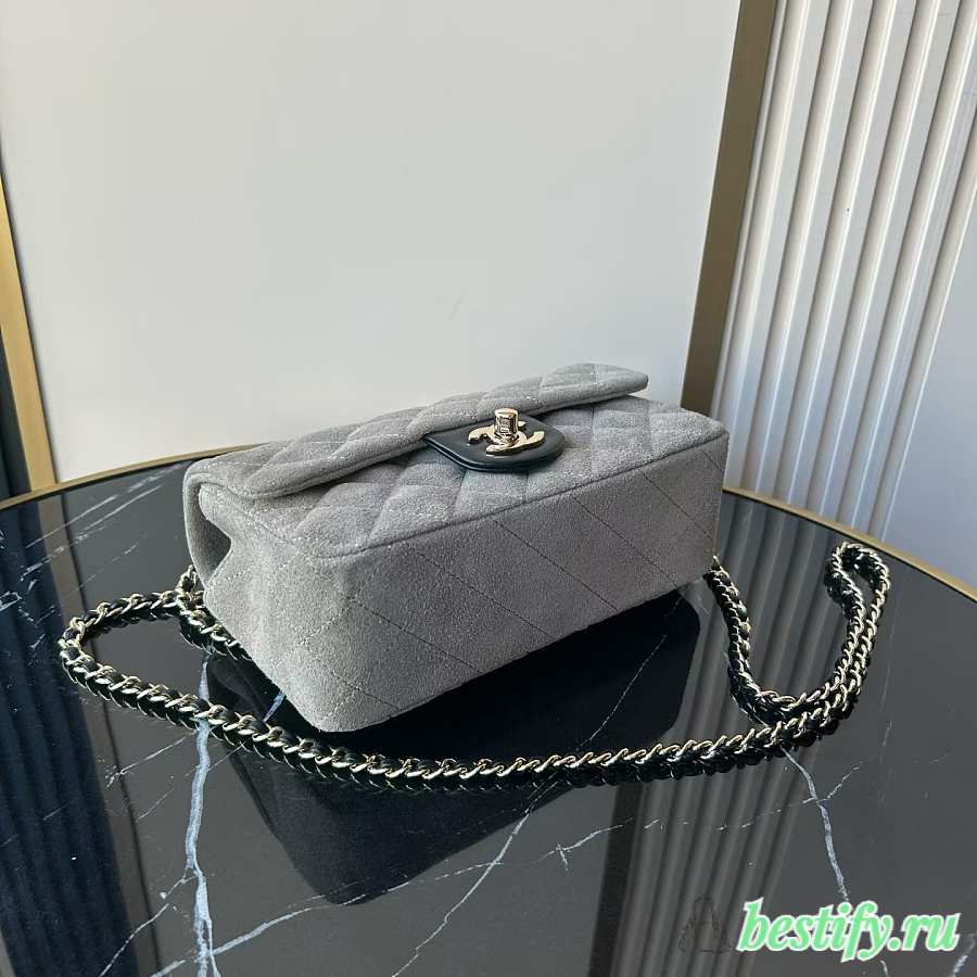 Chanel 25 bag in grey suede with black leather trim - 20x12x7cm