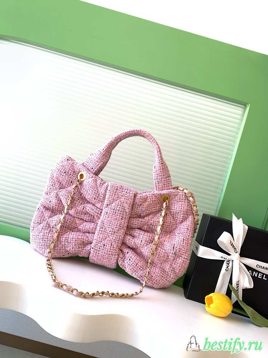 Chanel 25K Large Tweed Bow Bag in Pink - 38x29x5cm