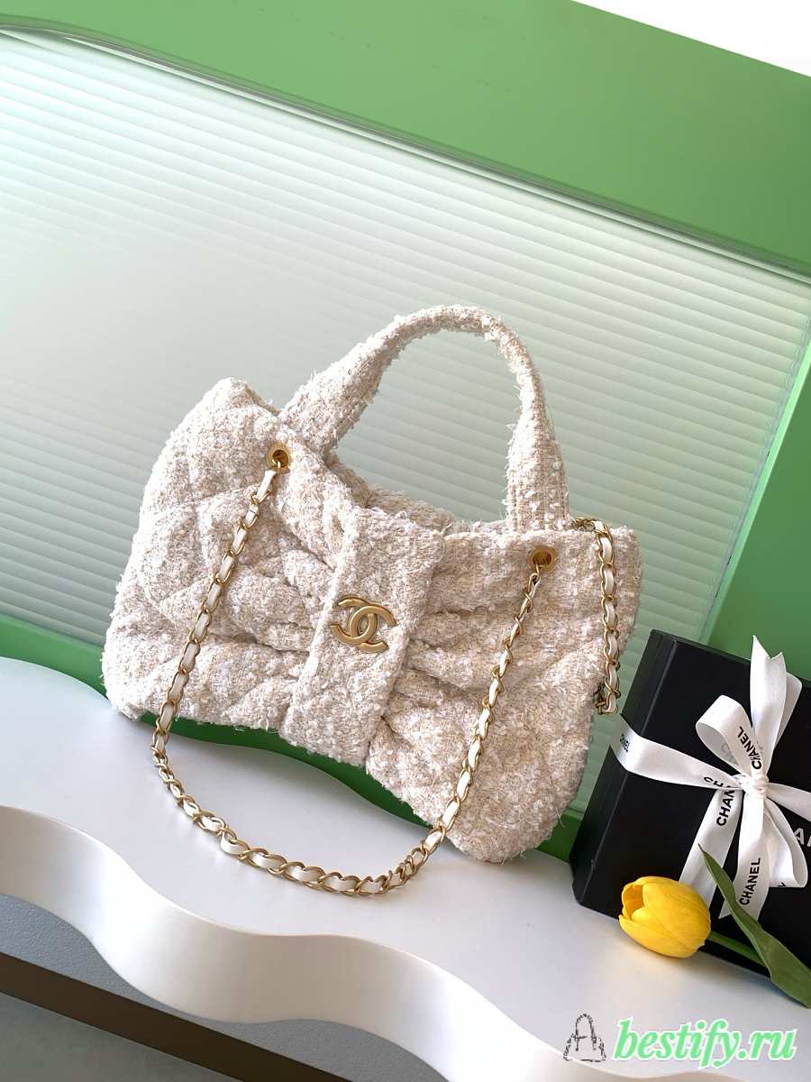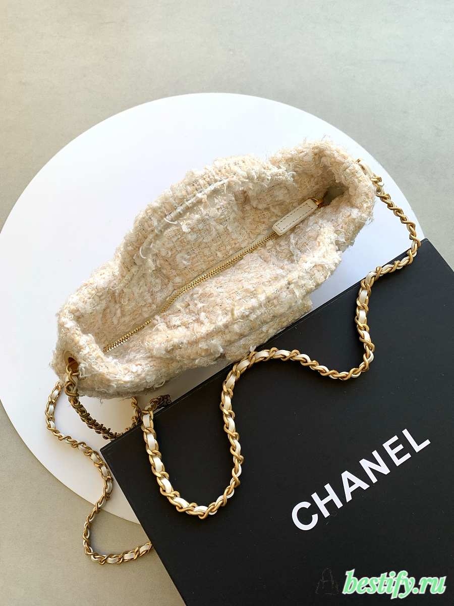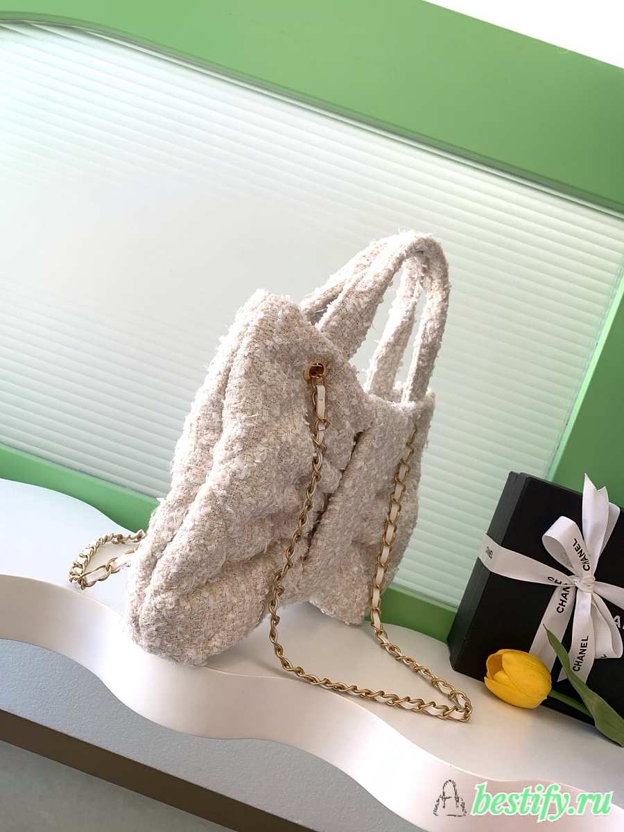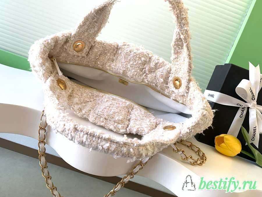 Chanel 25K Large Tweed Bow Bag in White - 38x29x5cm