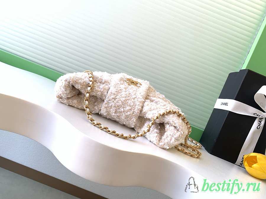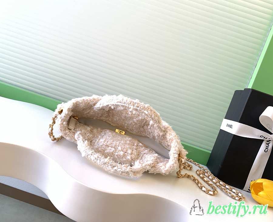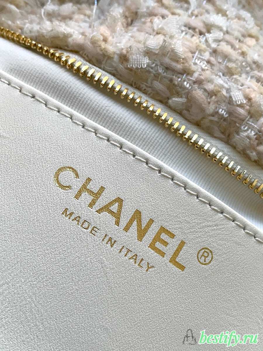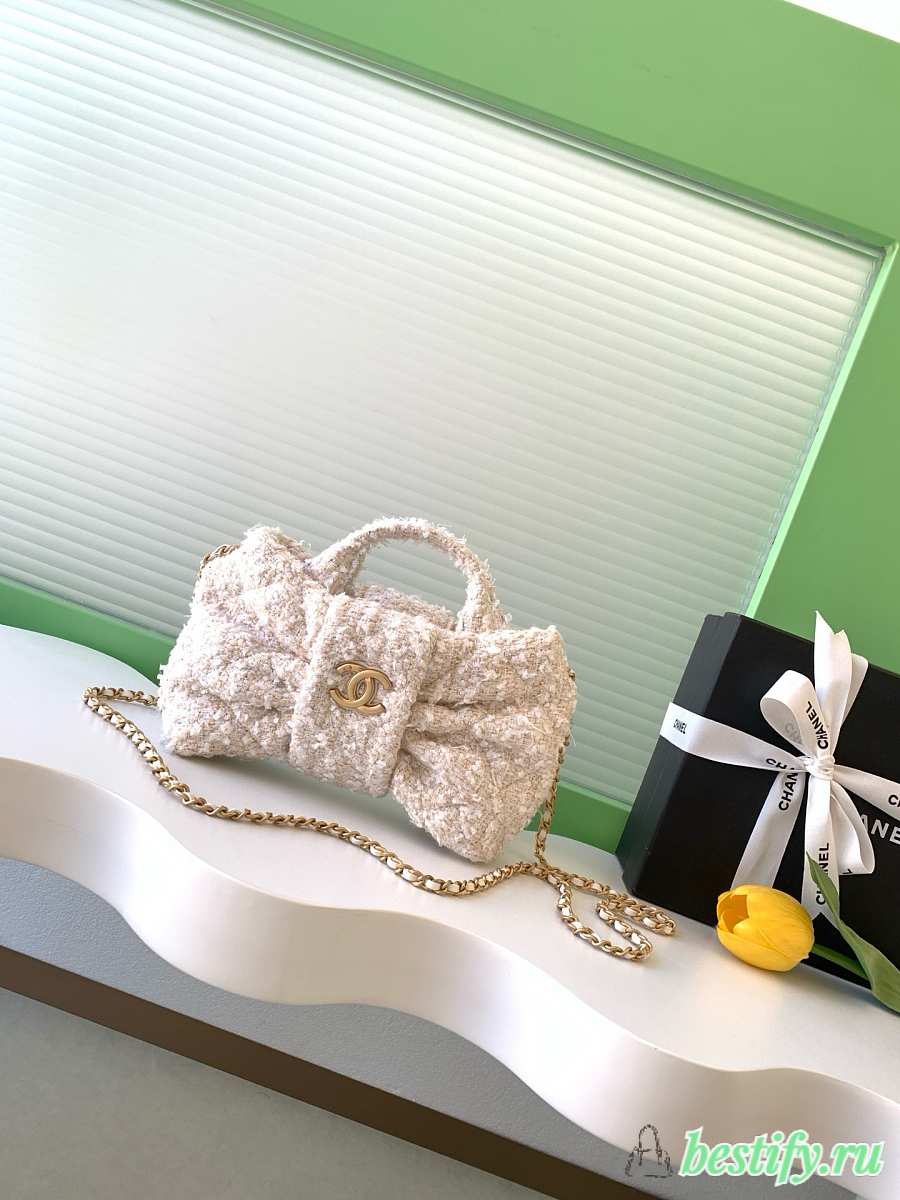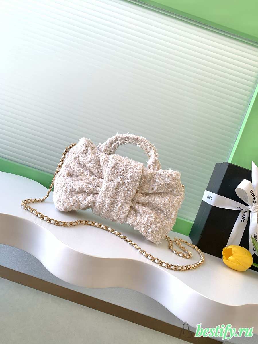 Chanel 25K Small Tweed Bow Bag in White - 26x18x5cm
