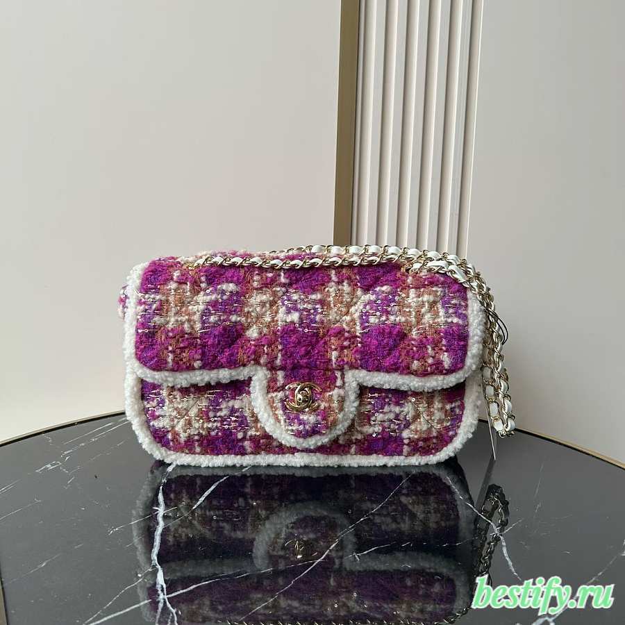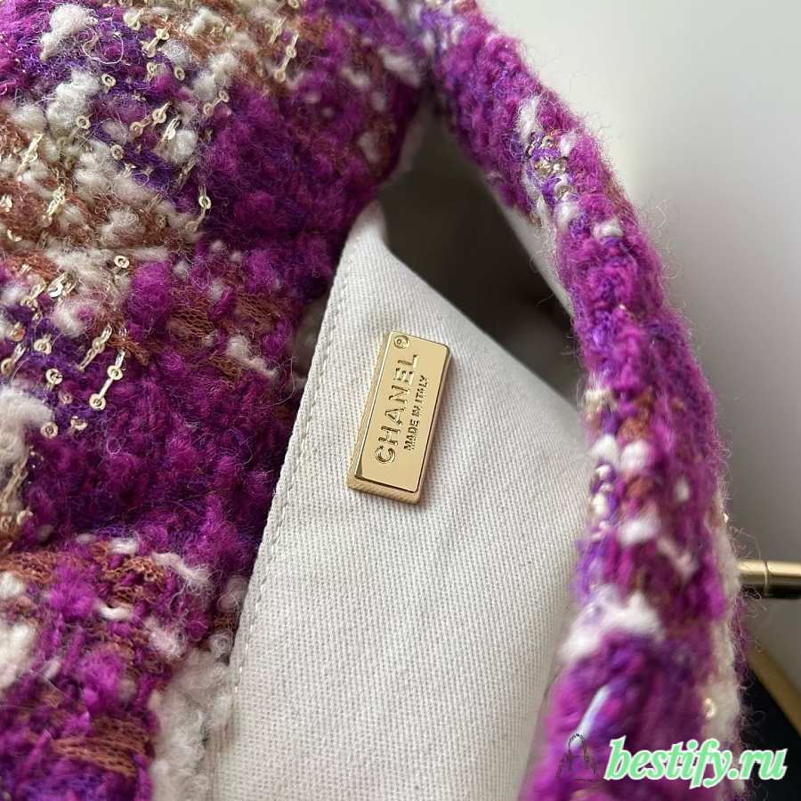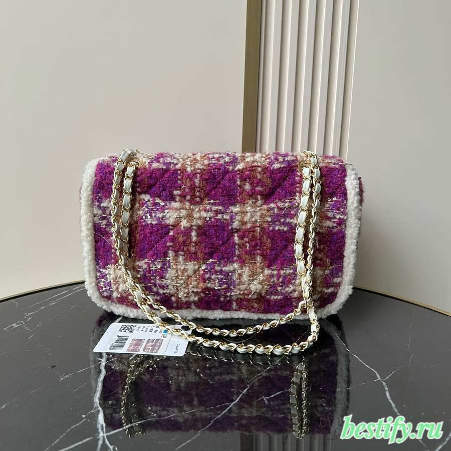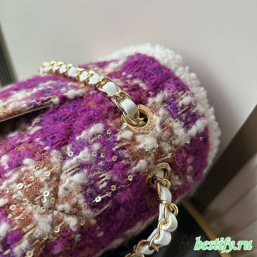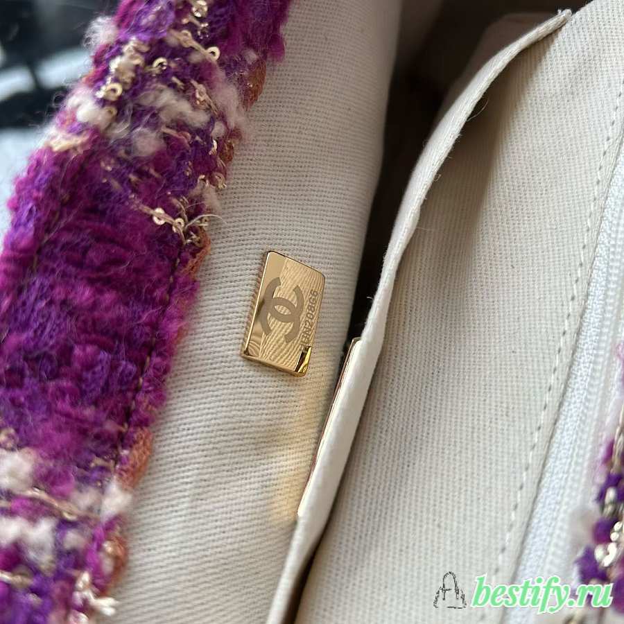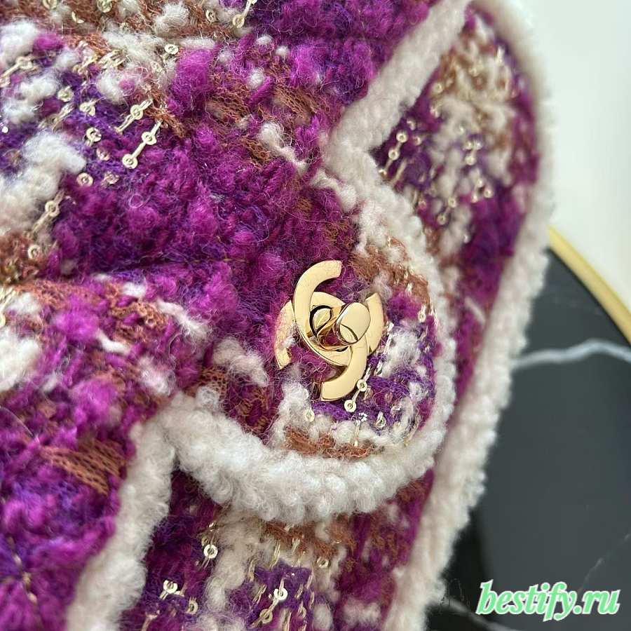 Chanel 25N large flap bag purple tweed shearling lambskin gold tone metal - 26.5x16.5x9cm