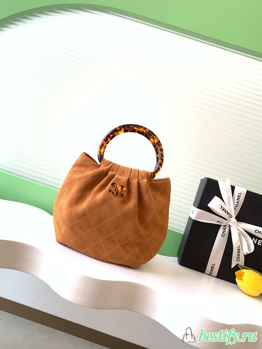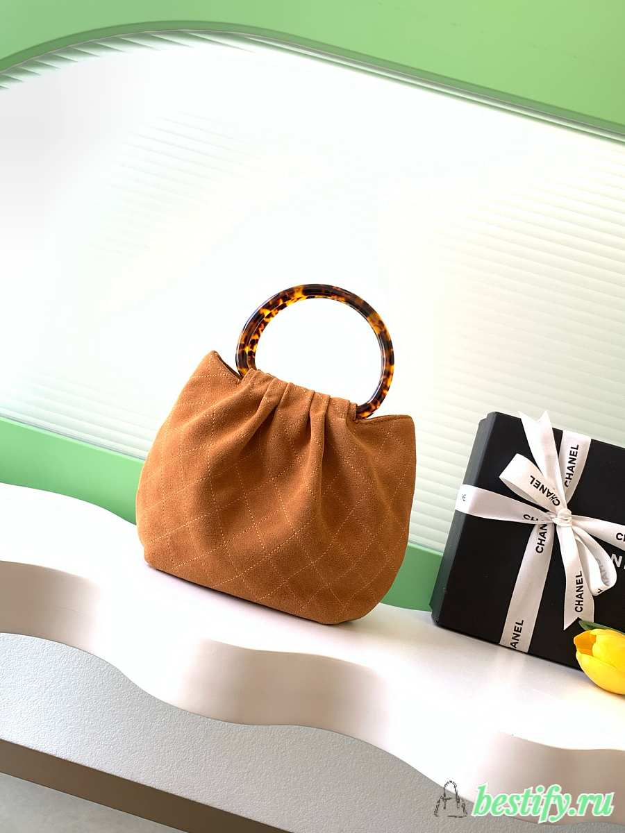 Chanel 26C Brown Suede Mini Hobo Bag - 24x18x12cm