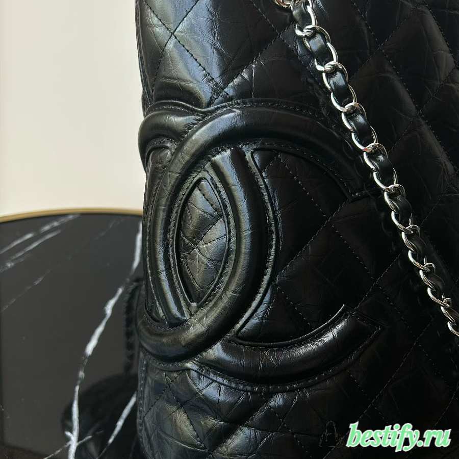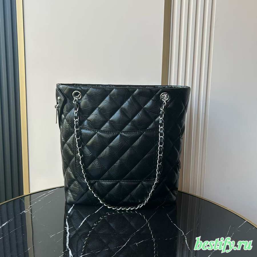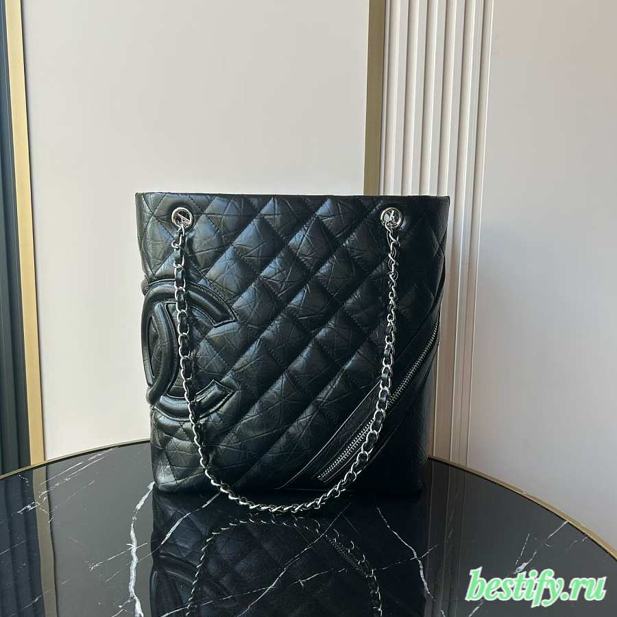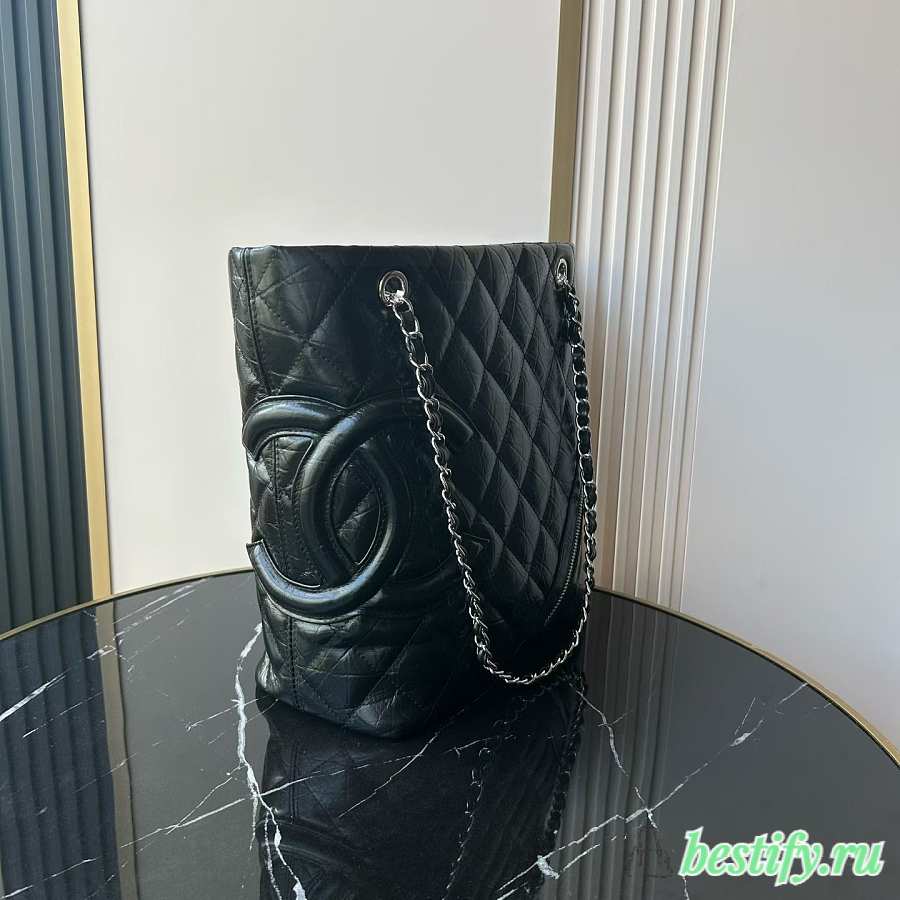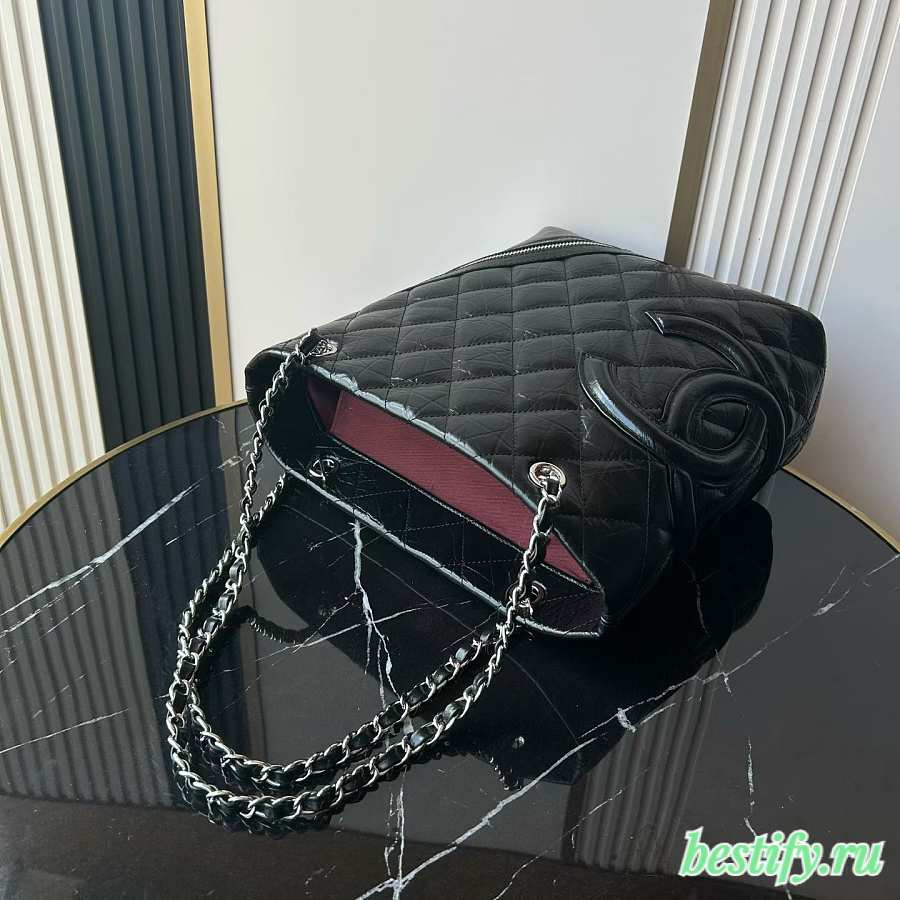 Chanel Cambon Ligne tote bag in black quilted leather - 28x25x12cm