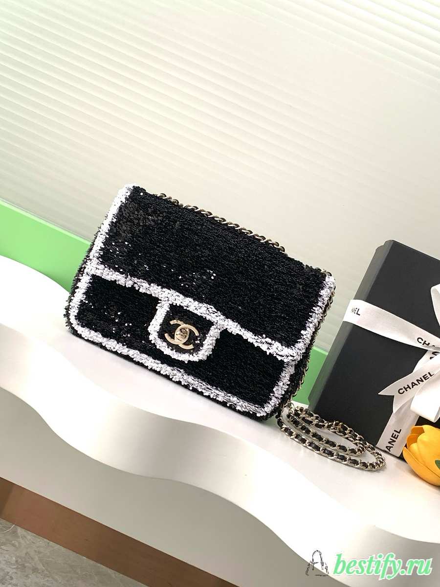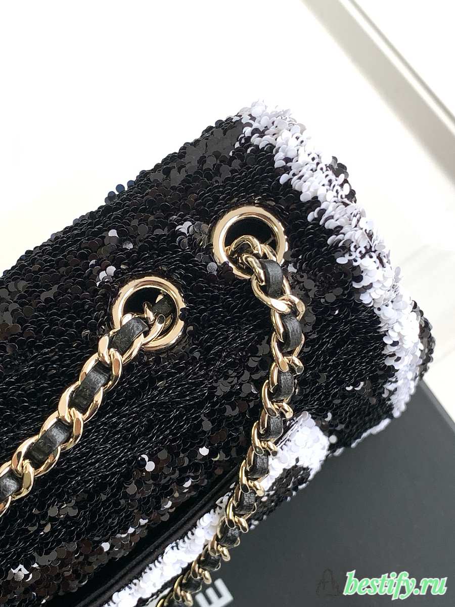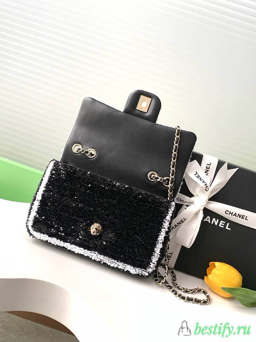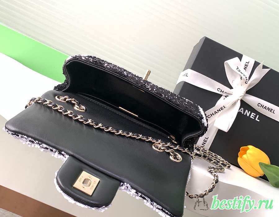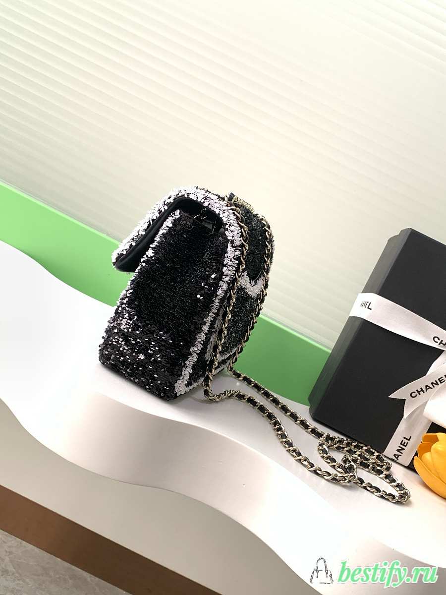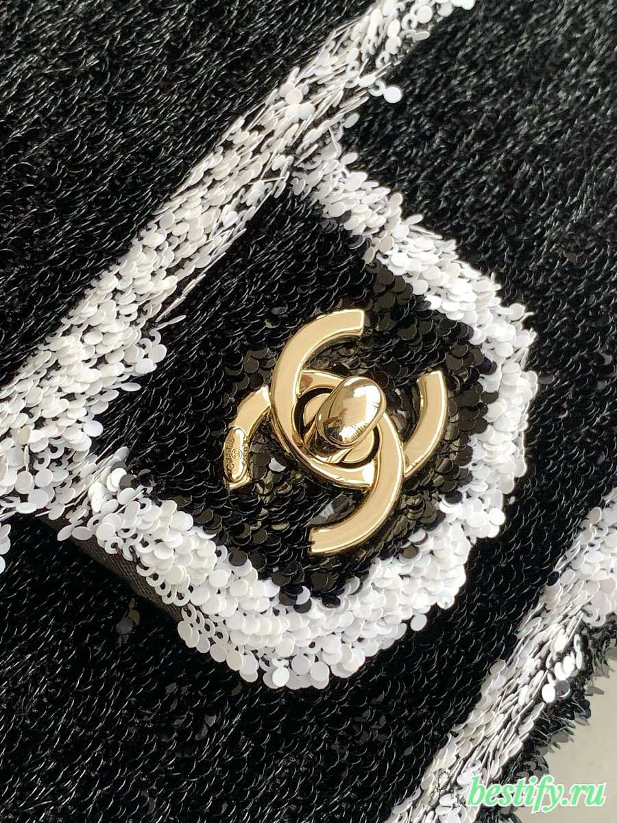 Chanel Flap with black&white sequin calfskin Bag - 21x14x8cm