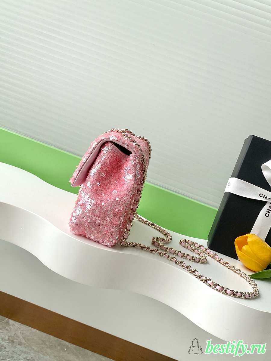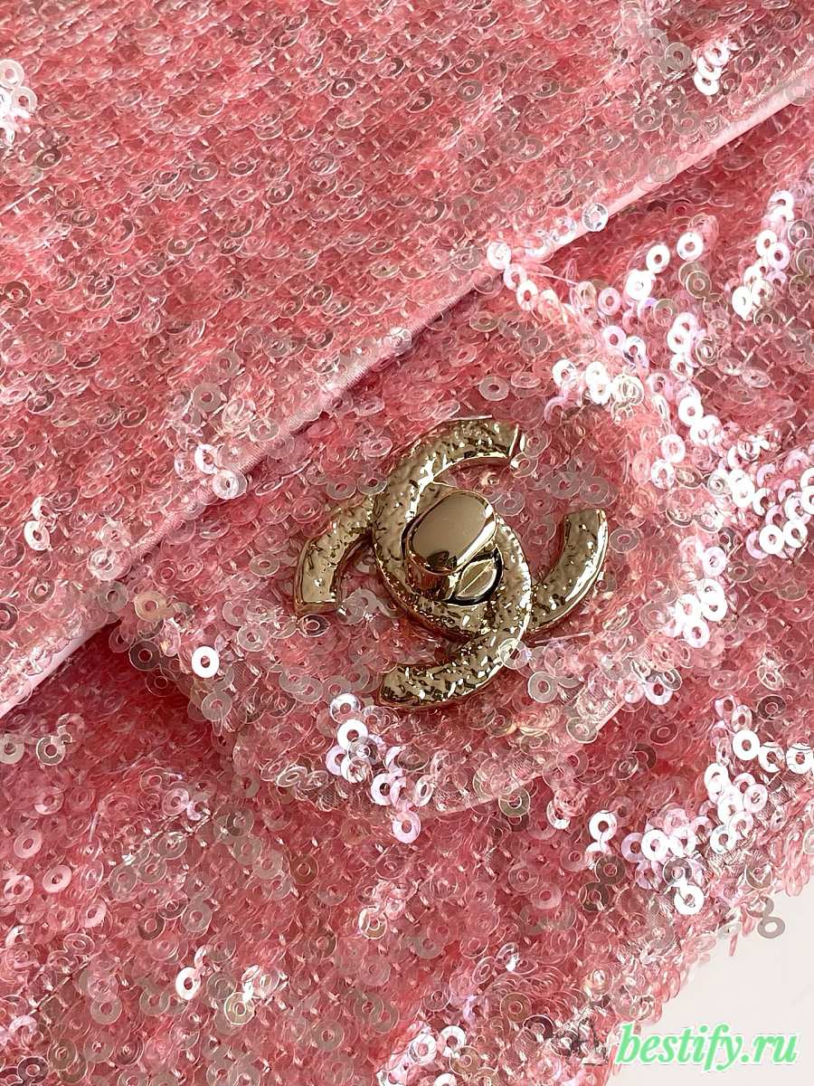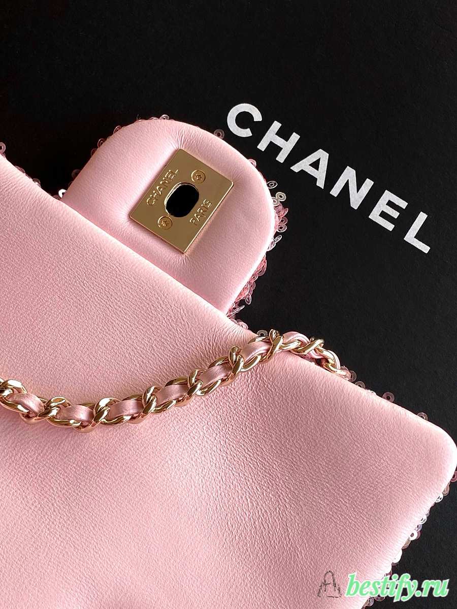 Chanel Flap with light pink sequin calfskin Bag - 21x14x8cm