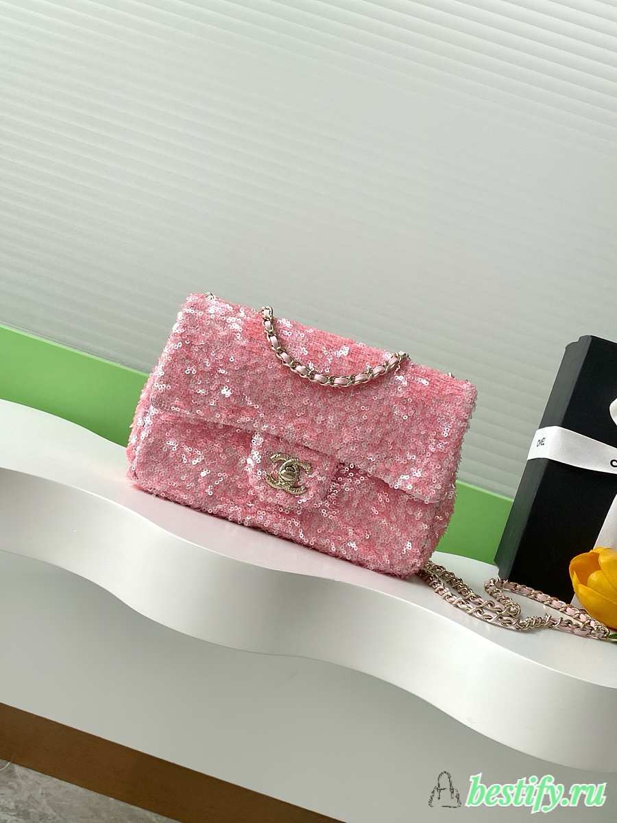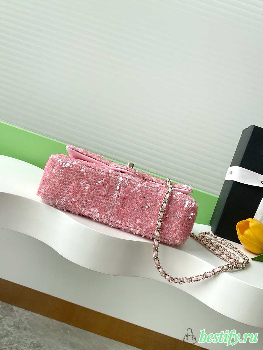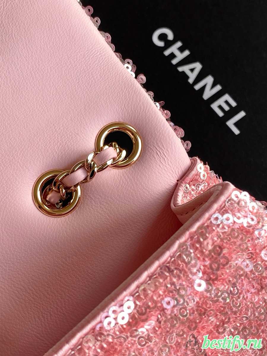 Chanel Flap with light pink sequin calfskin Bag - 21x14x8cm