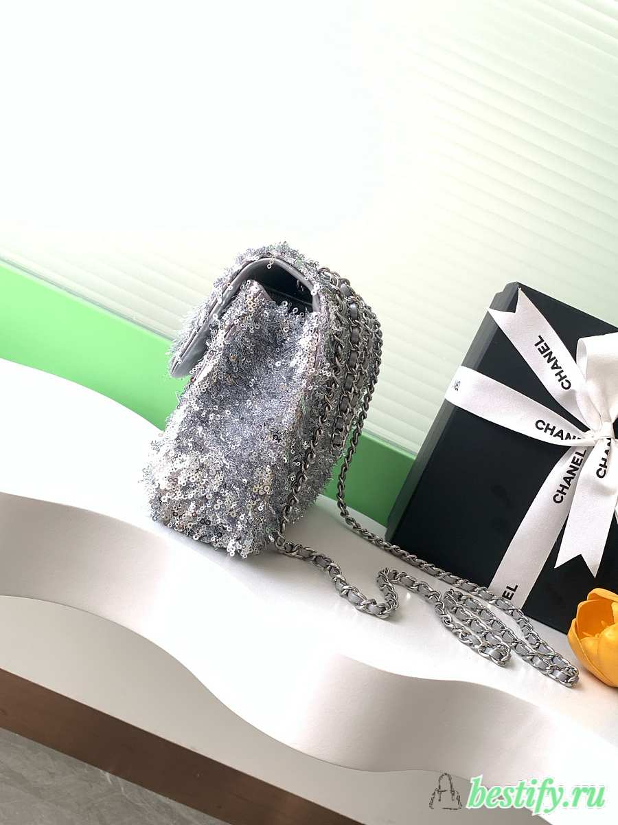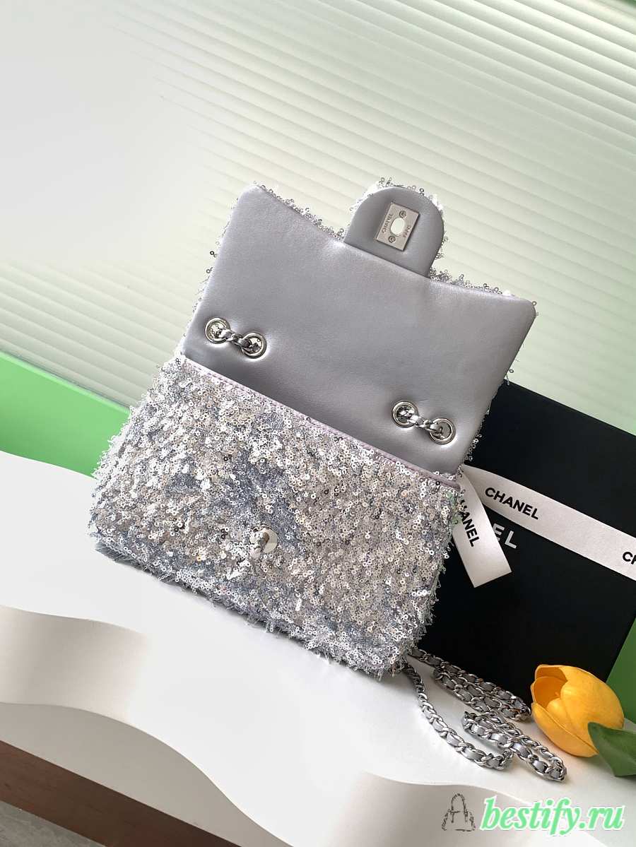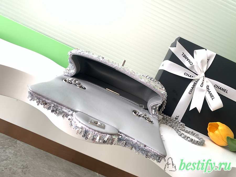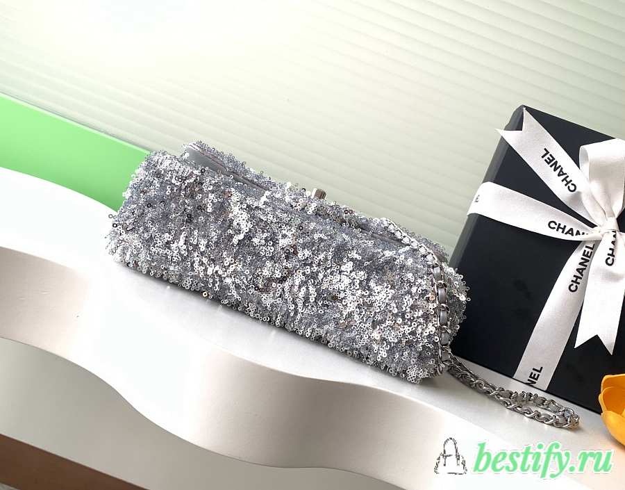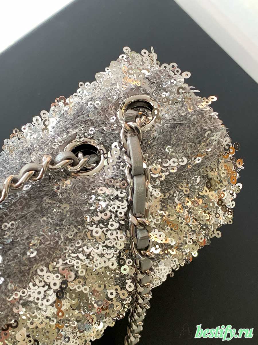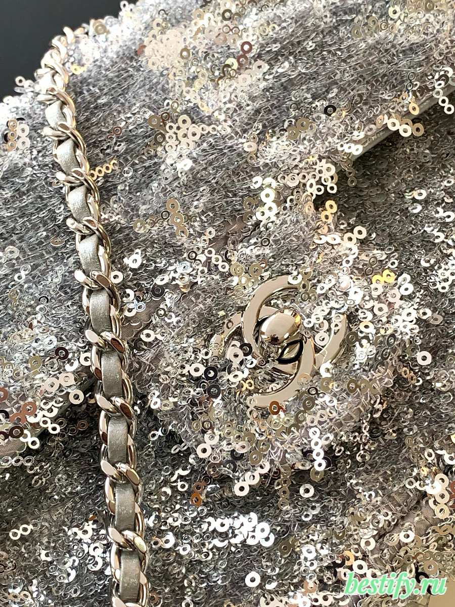 Chanel Flap with silver sequin calfskin Bag - 21x14x8cm