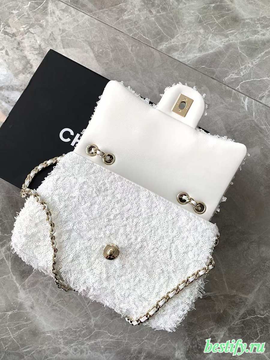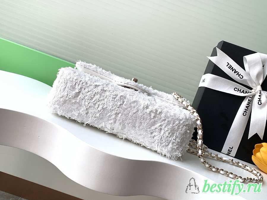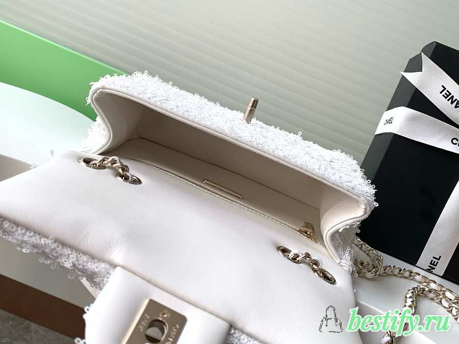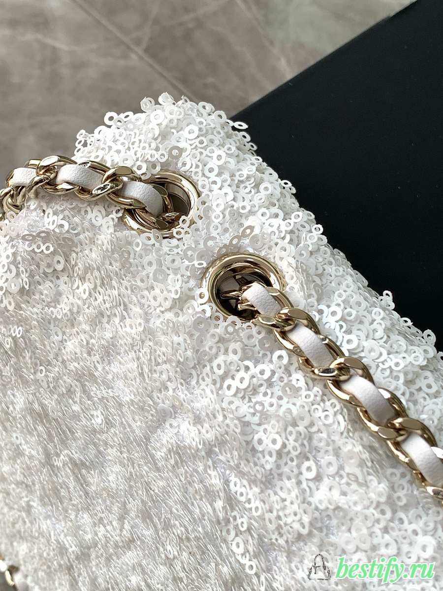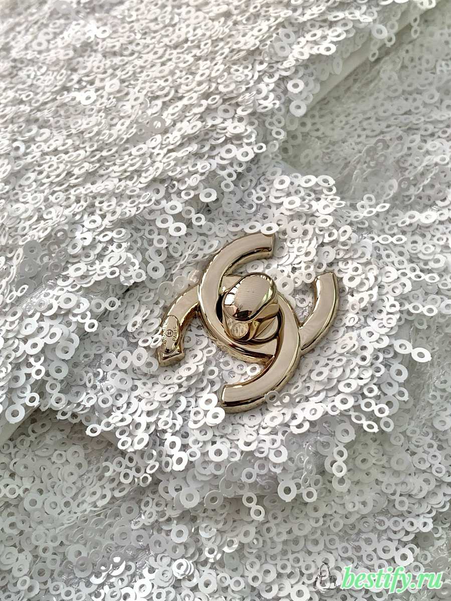 Chanel Flap with white sequin calfskin Bag - 21x14x8cm