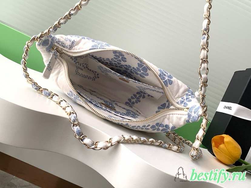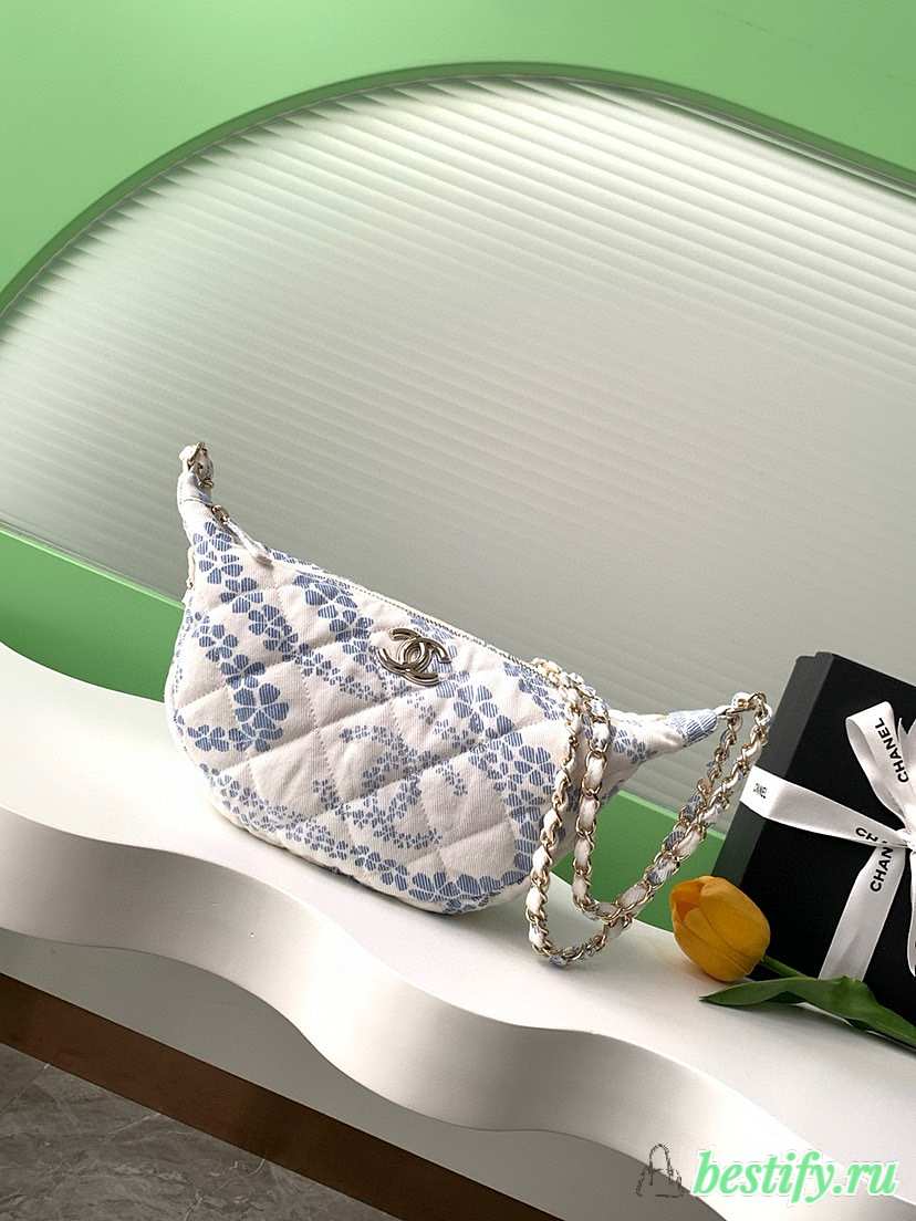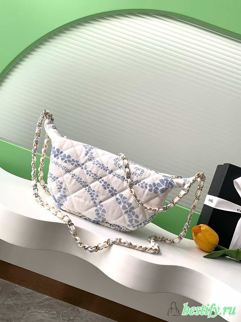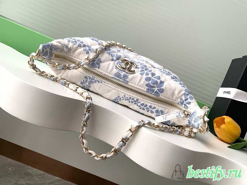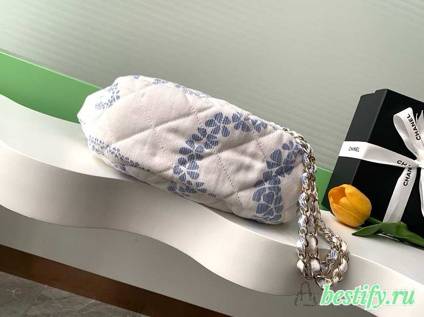 Chanel Hobo Bag Printed Denim White & Blue - 29cm