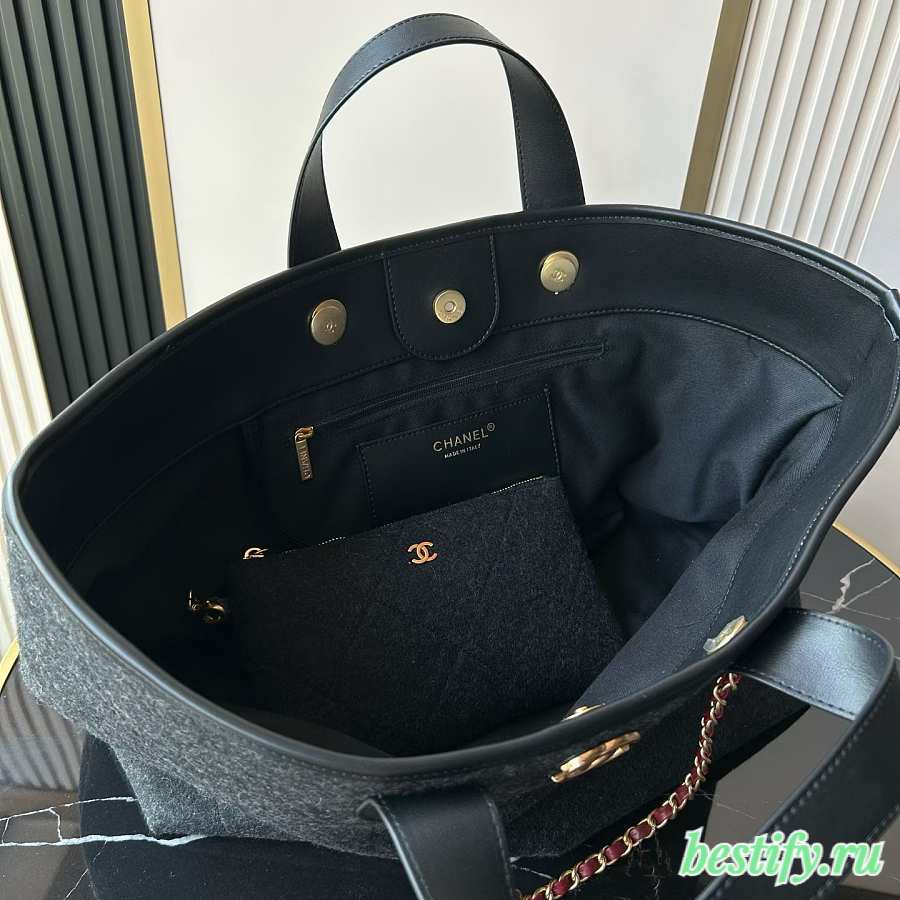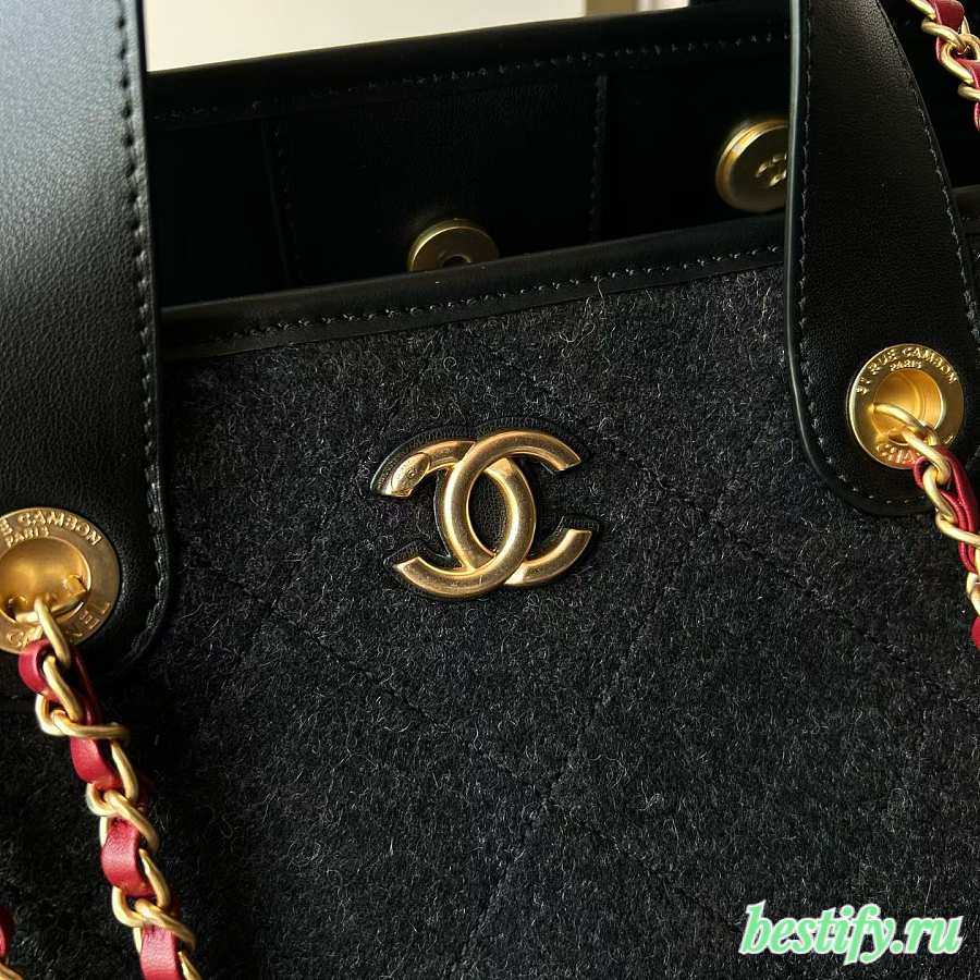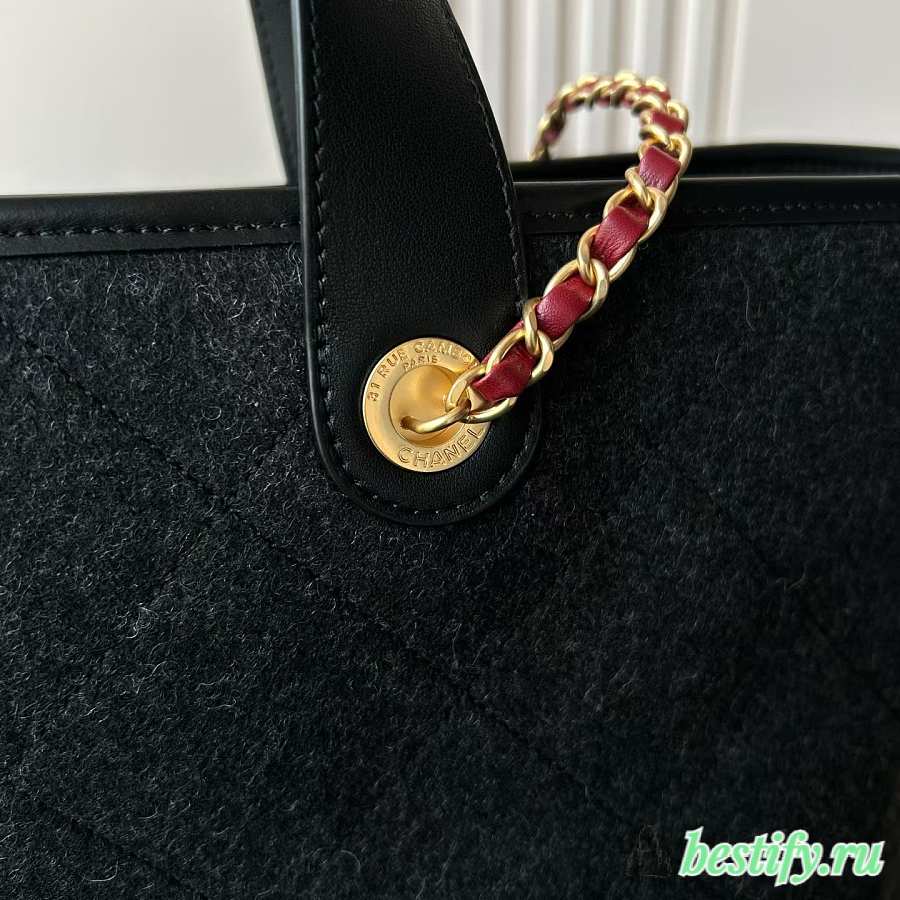 Chanel maxi shopping bag wool gold tone metal - 31x52x28x17cm