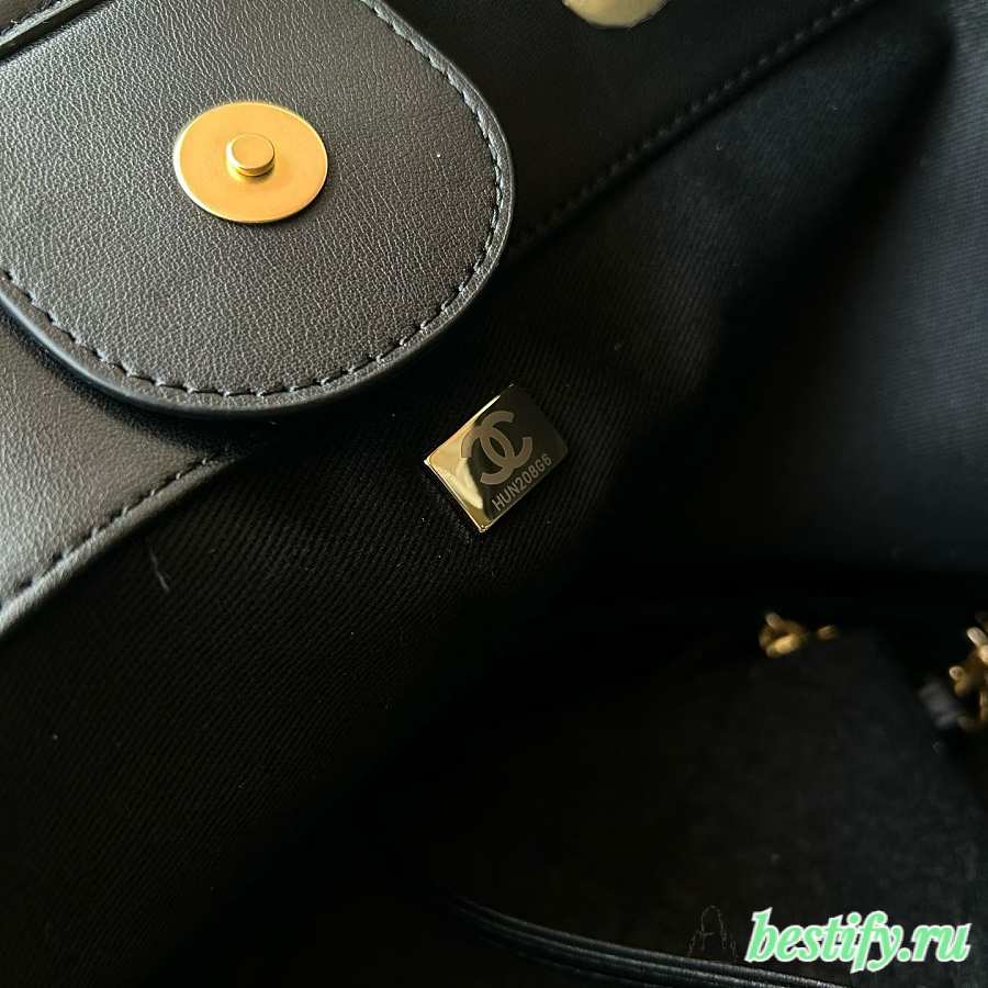 Chanel Flap Bag with Handle Patent Calfskin Gold Metal Black 19cm