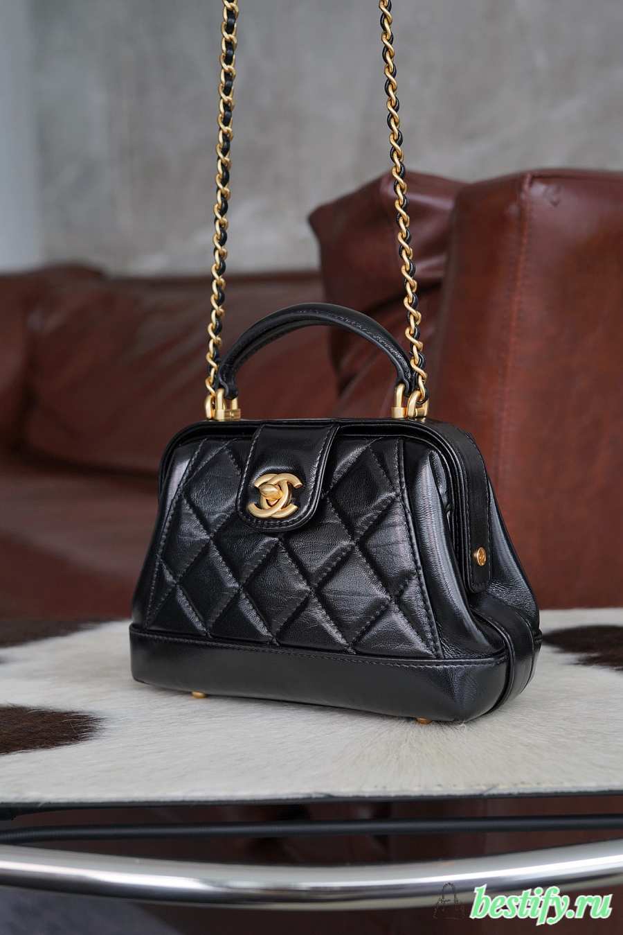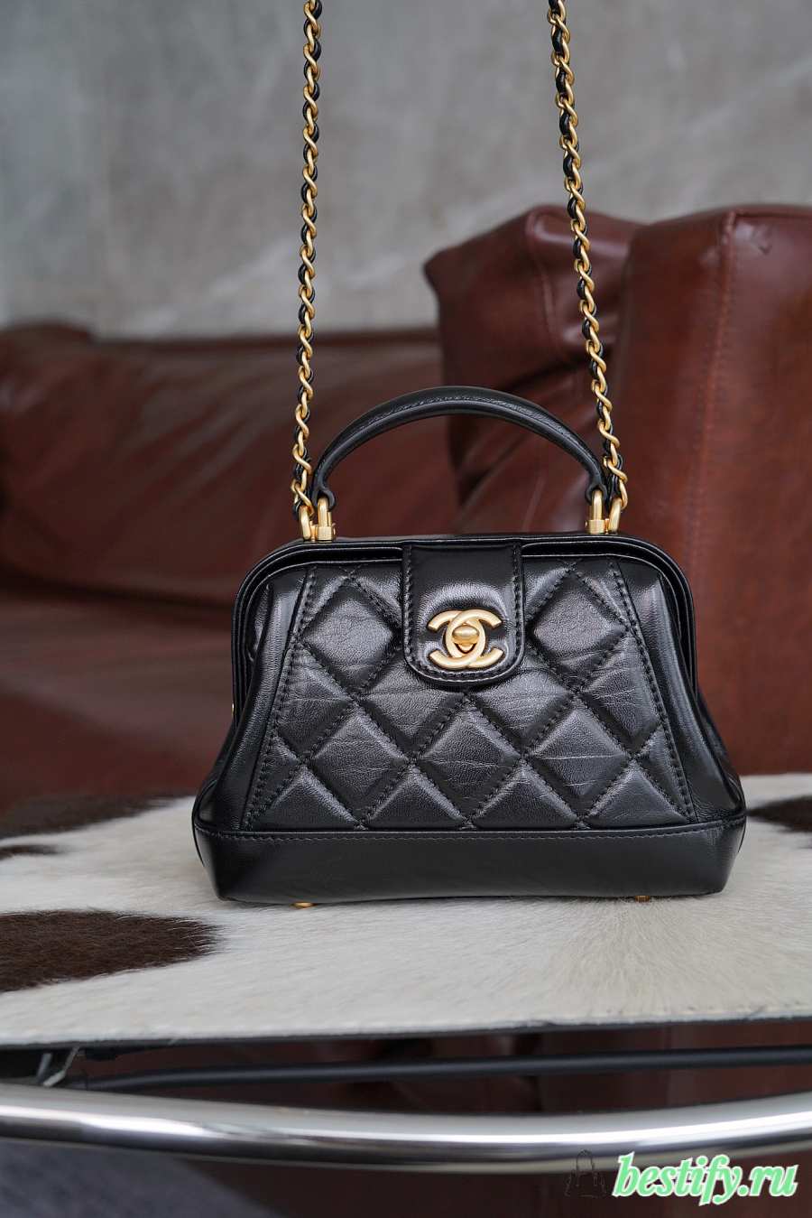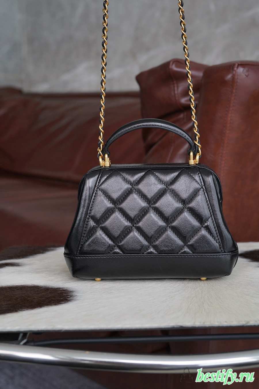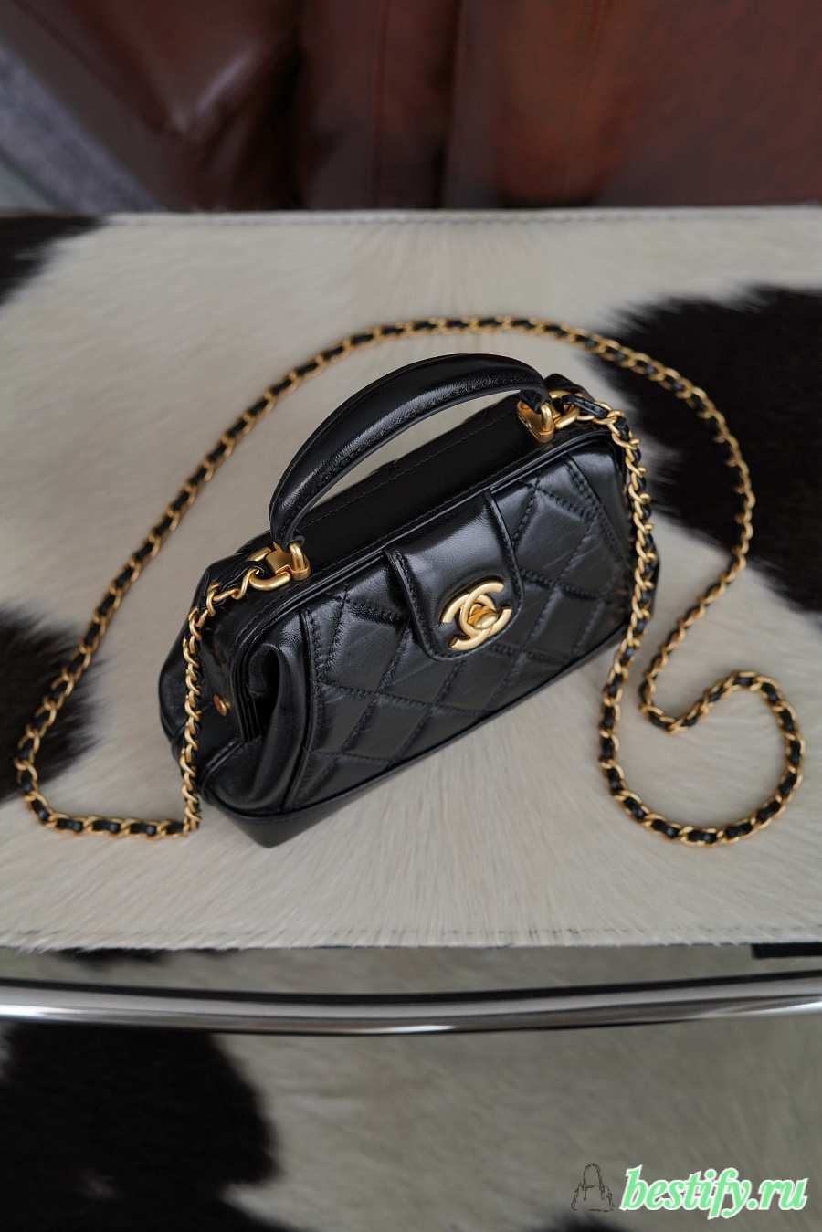 Chanel Mini Bag With Top Handle Shiny Lambskin Black 18cm