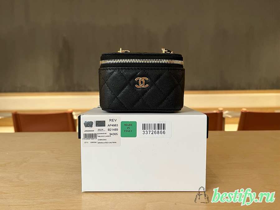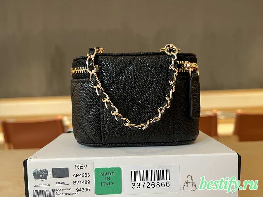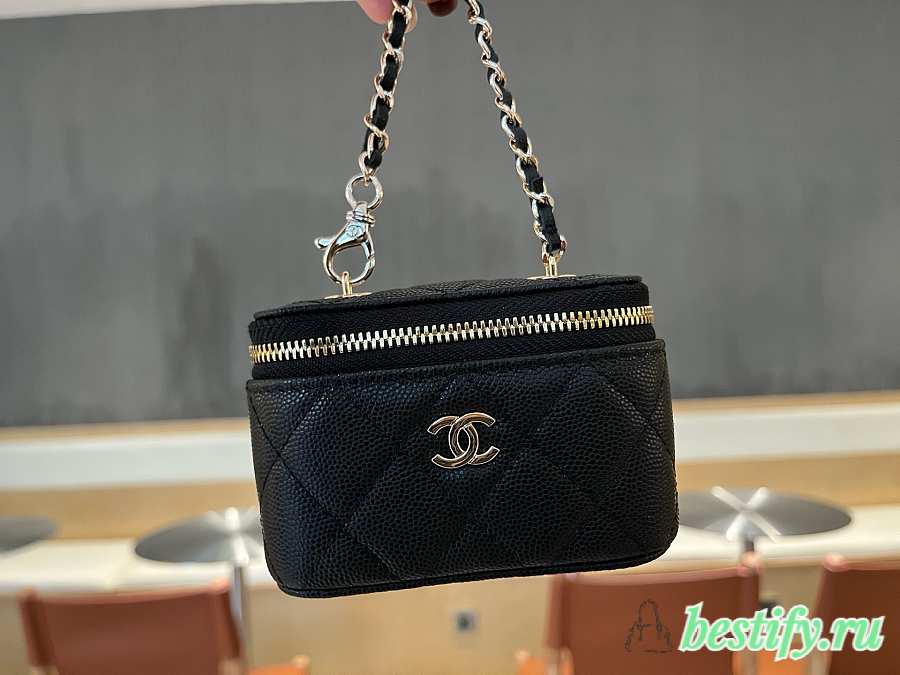 Chanel Mini Vanity Case with Chain in black quilted caviar leather 11cm