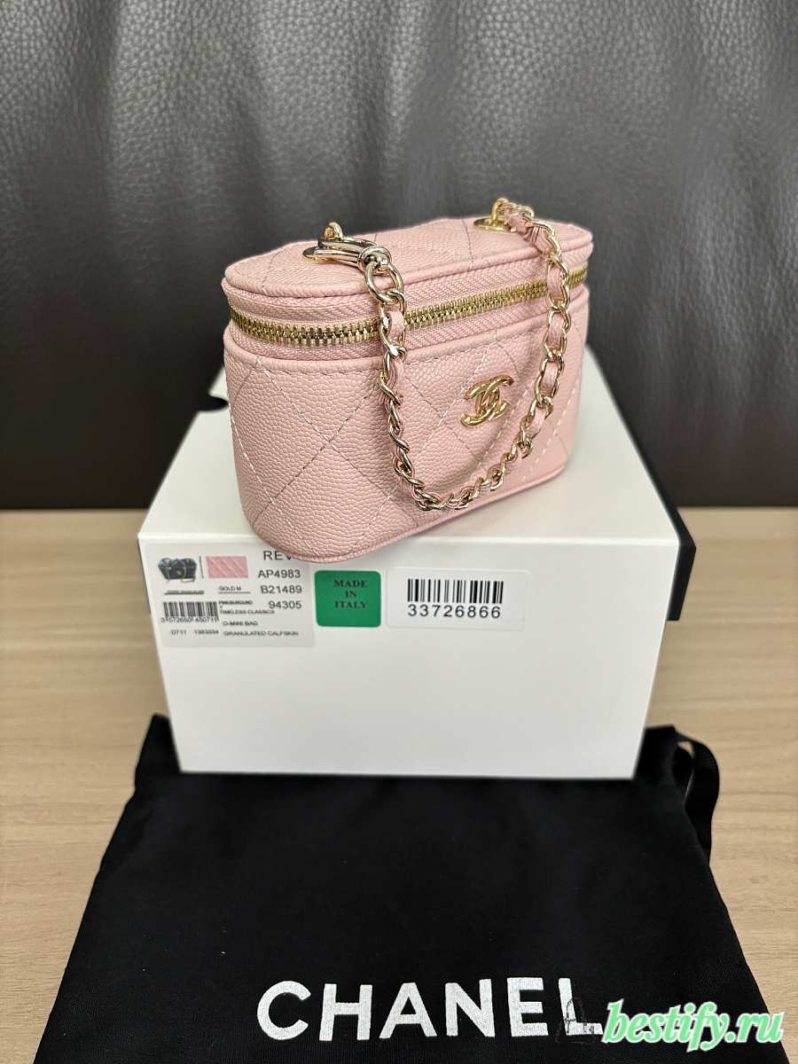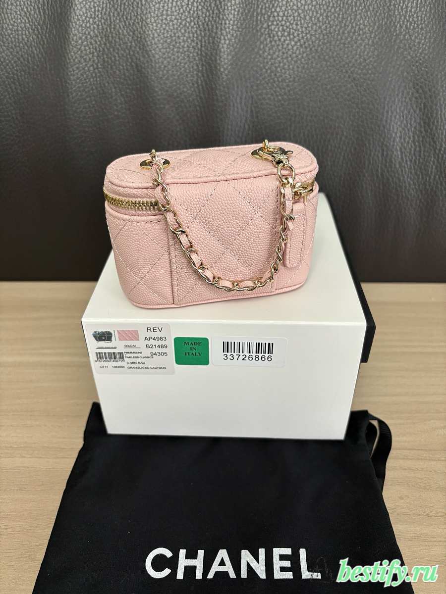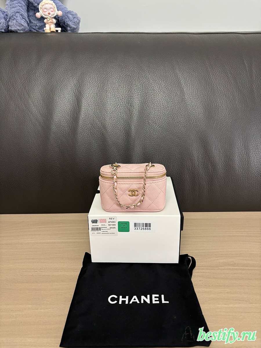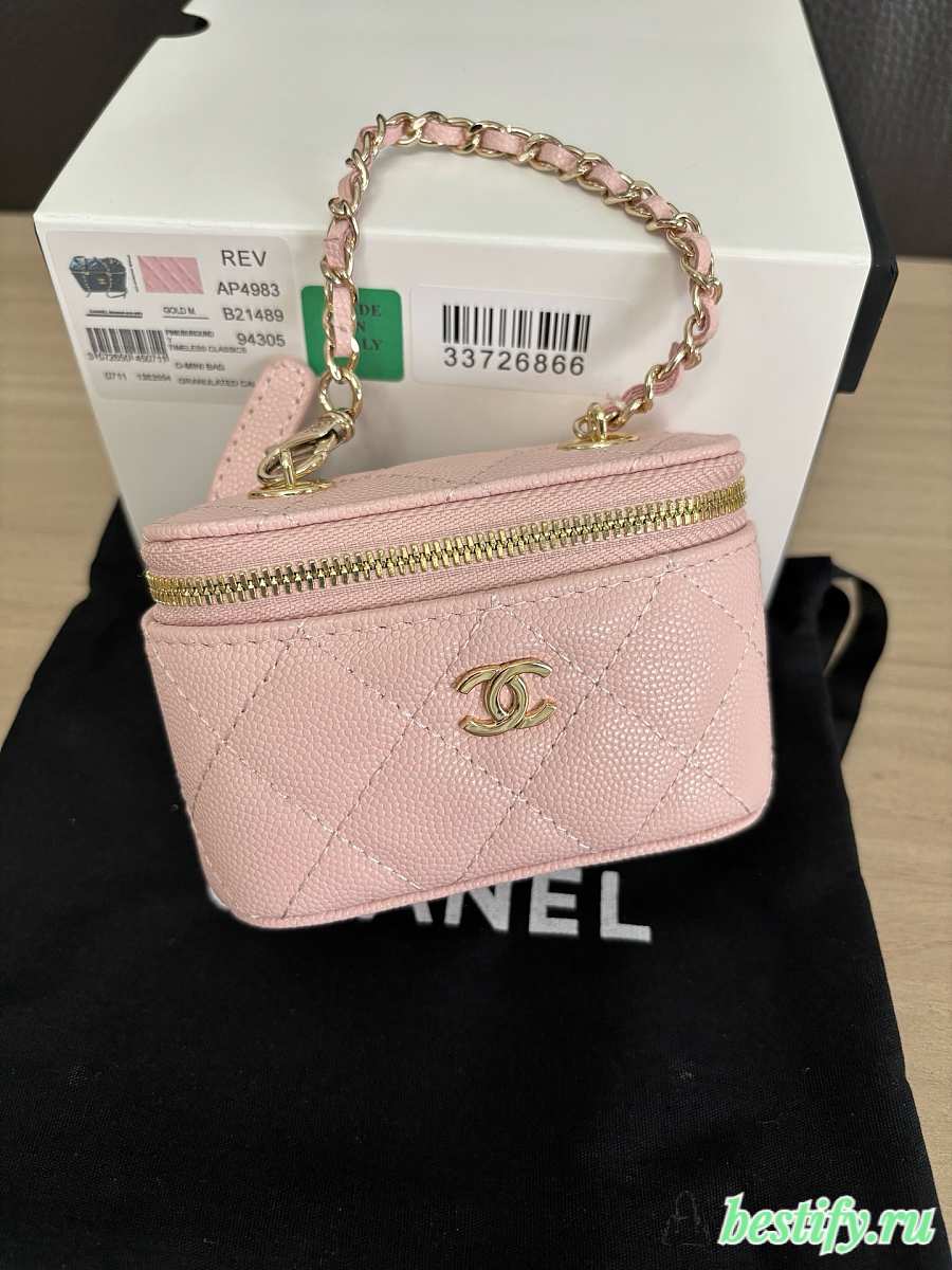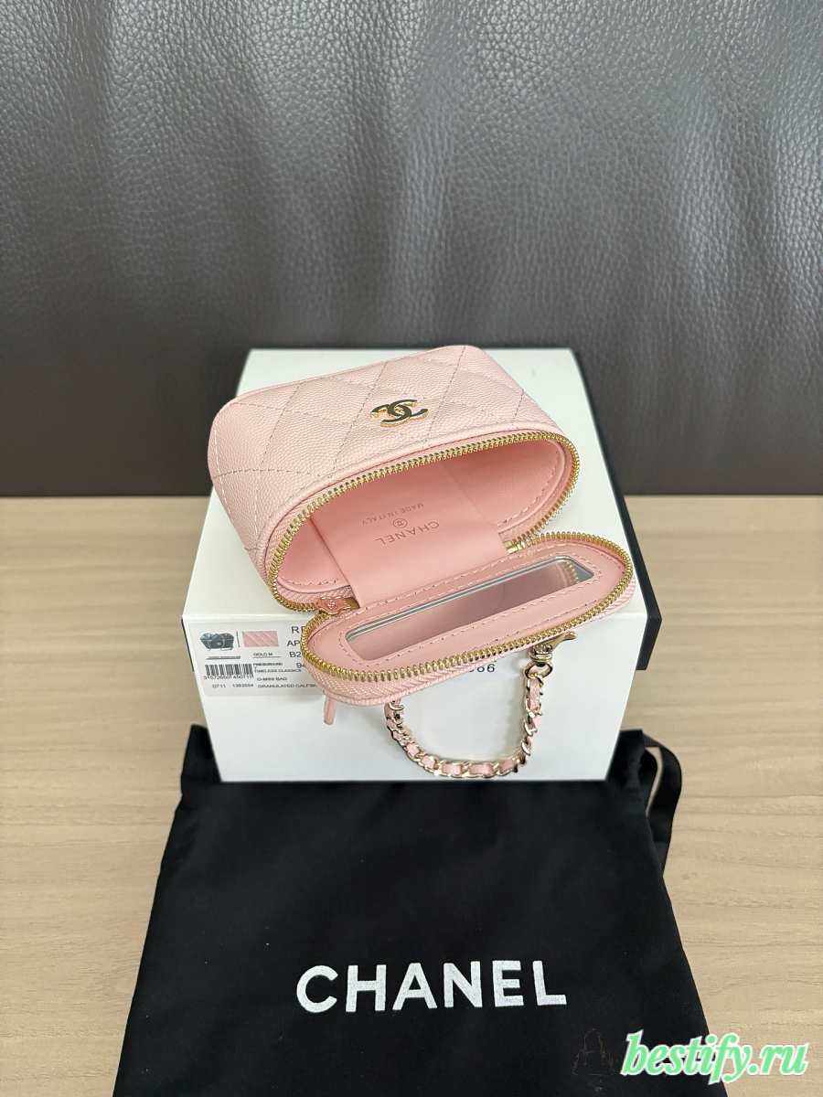 Chanel Mini Vanity Case with Chain in light pink quilted caviar leather 11cm