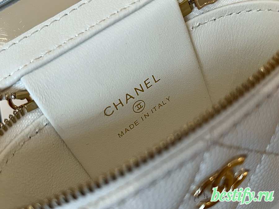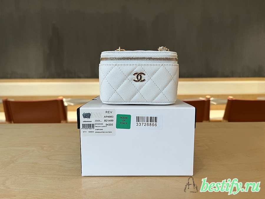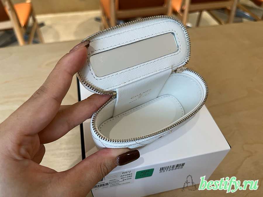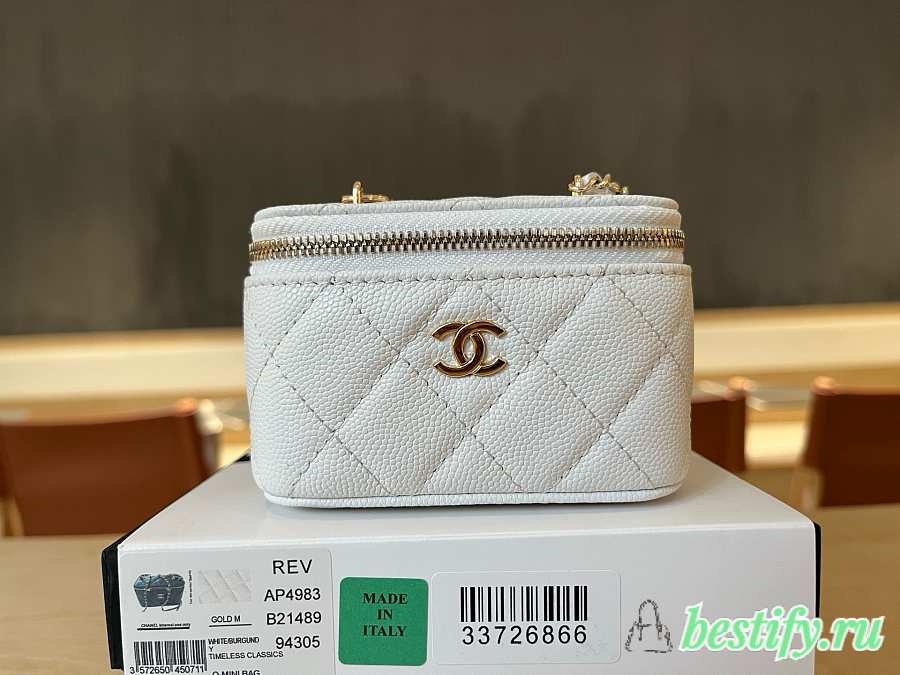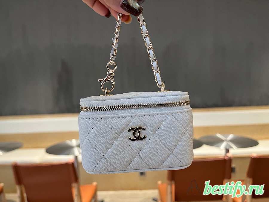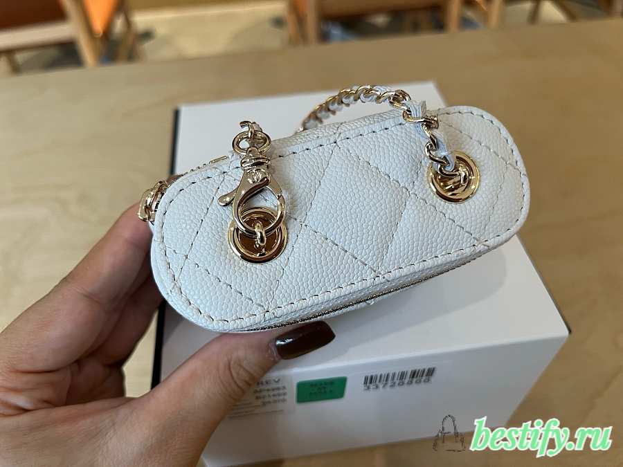 Chanel Mini Vanity Case with Chain in white quilted caviar leather 11cm