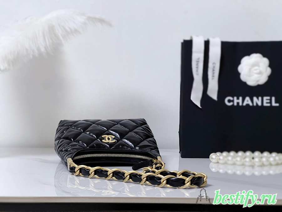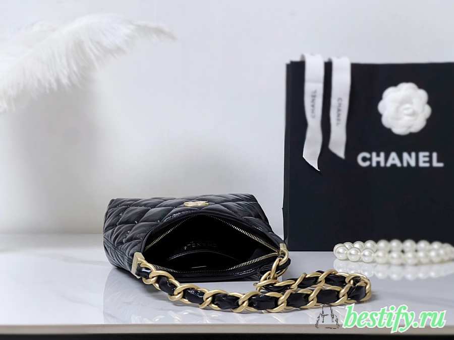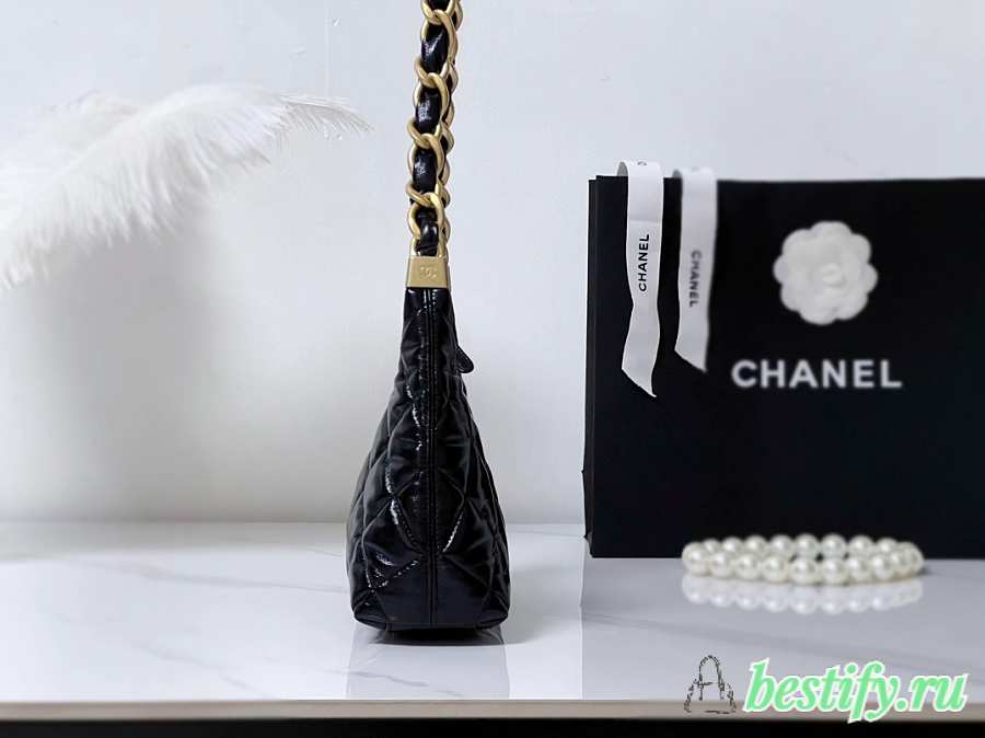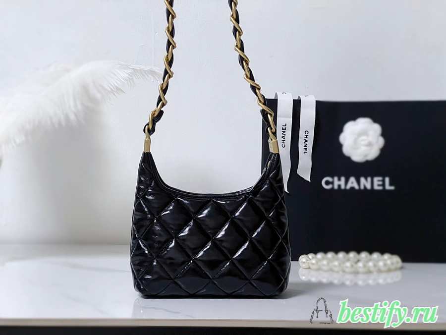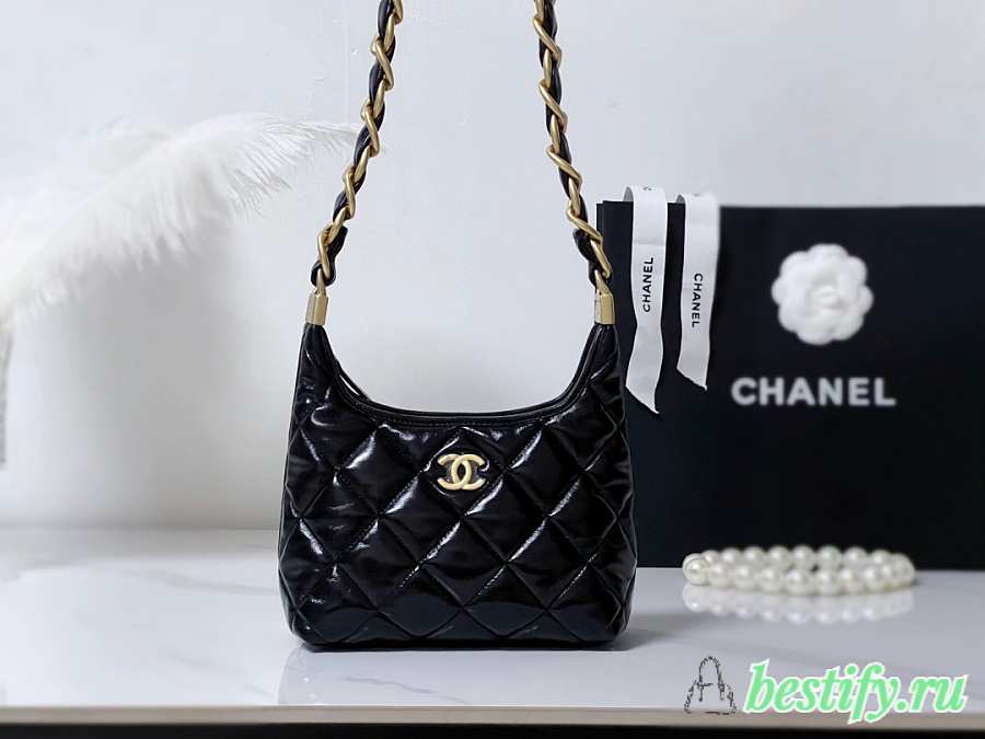 Chanel Small Hobo Bag Shiny Lambskin & Gold Tone Metal Black - 22.5x19.5x8.5cm
