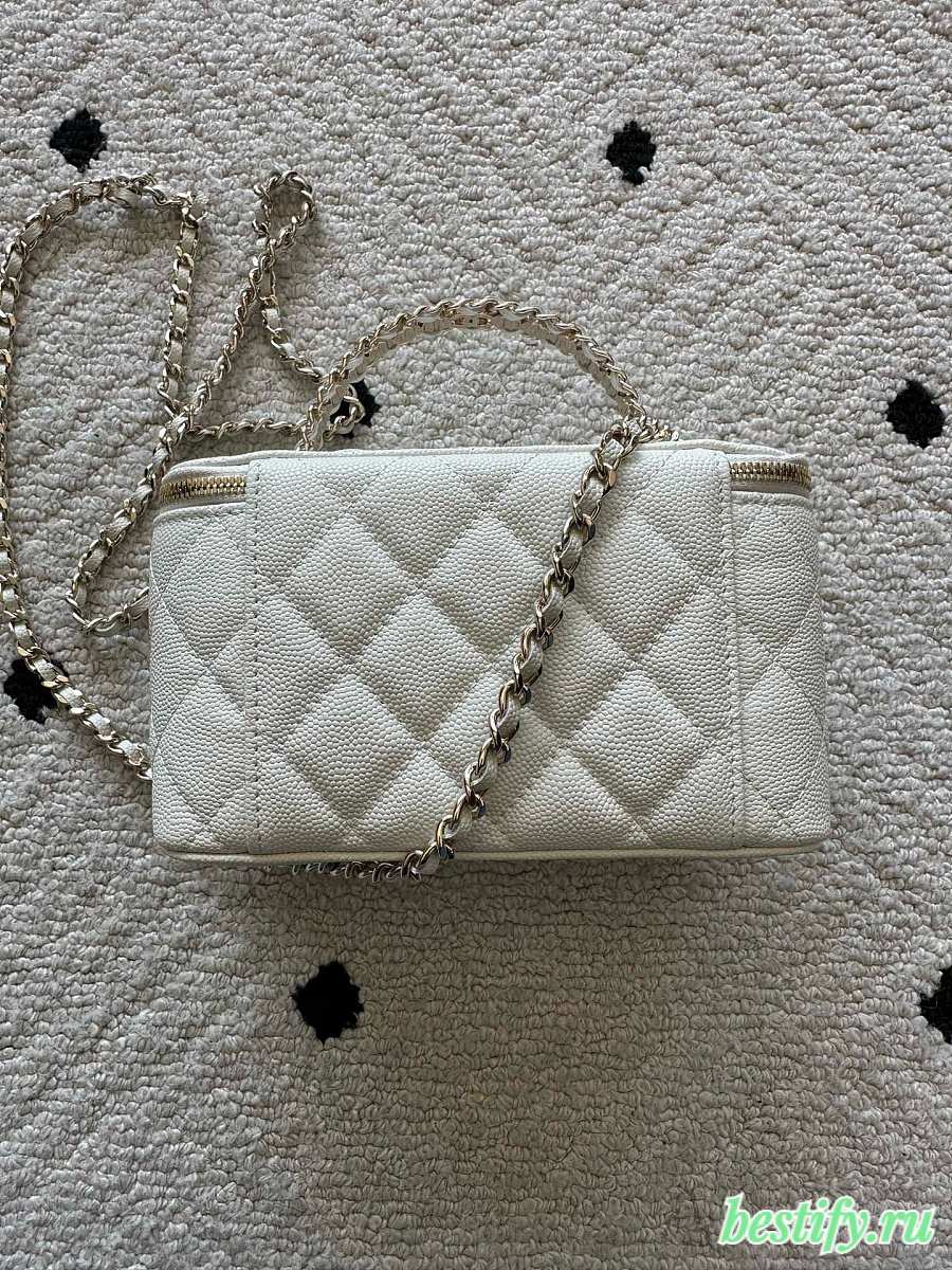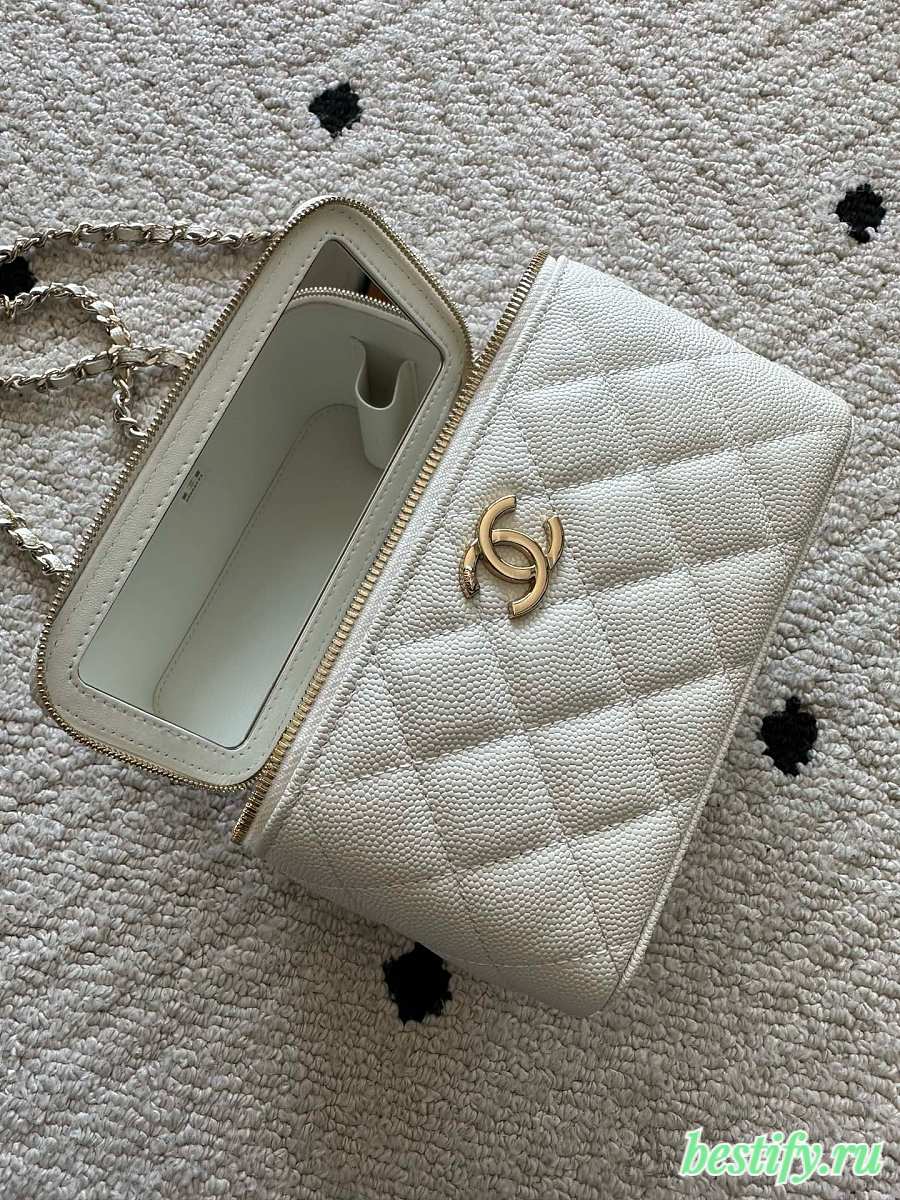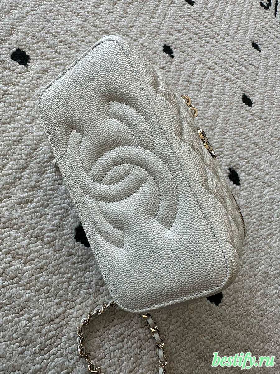 Chanel Mini Vanity Case with Chain in white quilted caviar leather 11cm