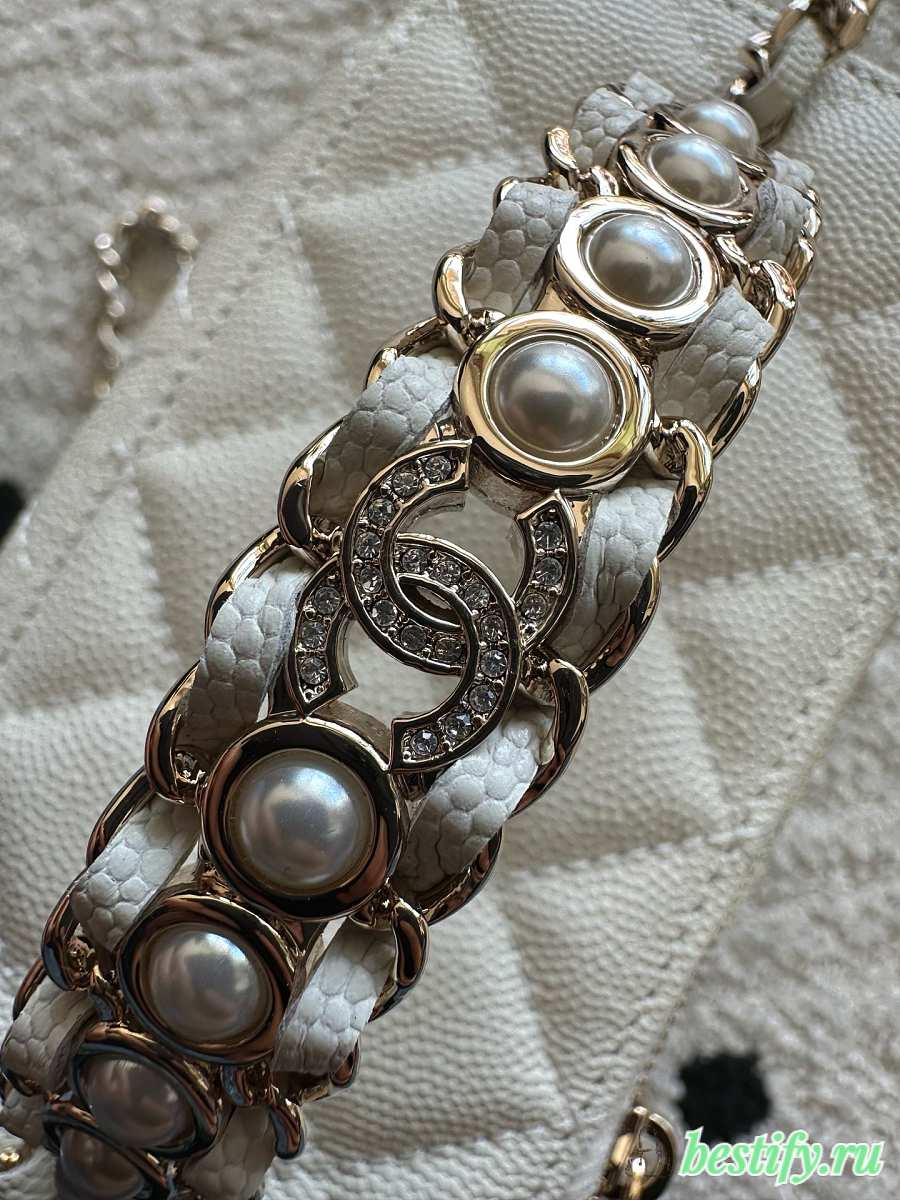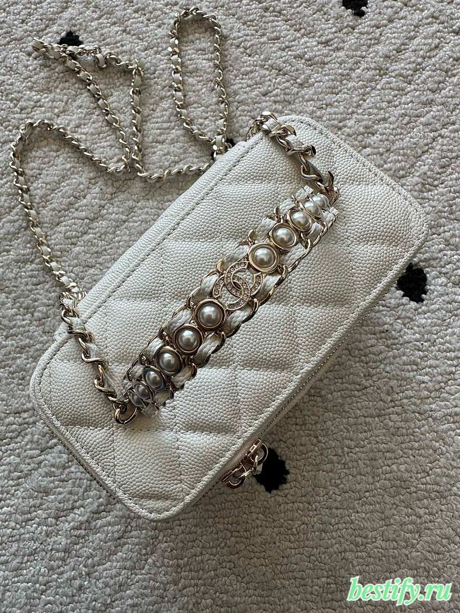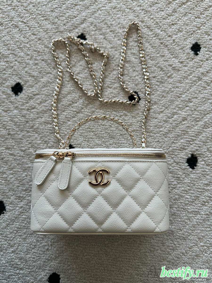 Chanel Mini Vanity Case with Chain in white quilted caviar leather 11cm