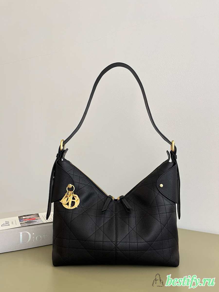 Dior Medium Voyage Bag Black Flat Macrocannage Crinkled Calfskin - 28cm