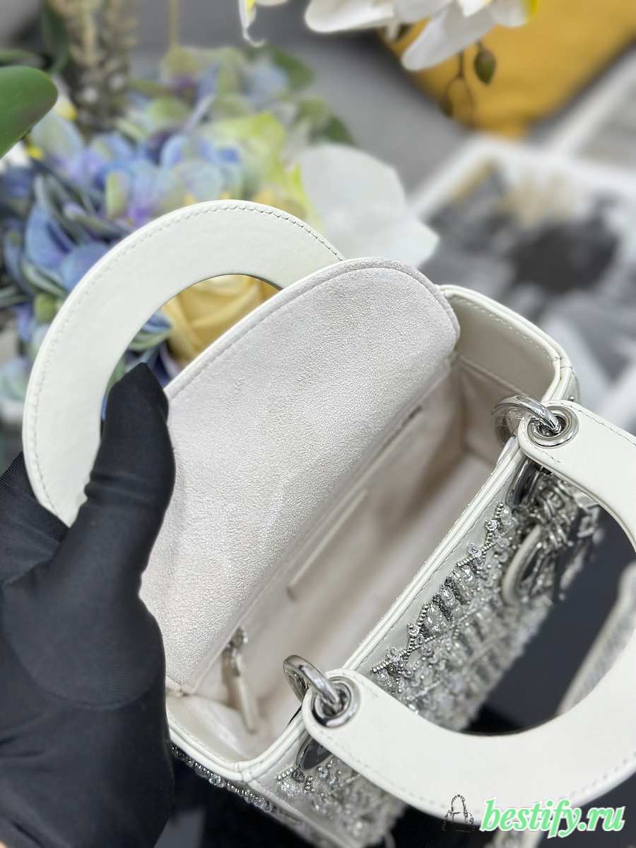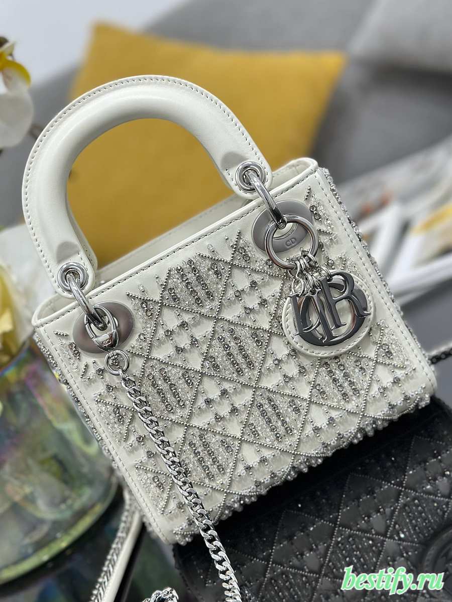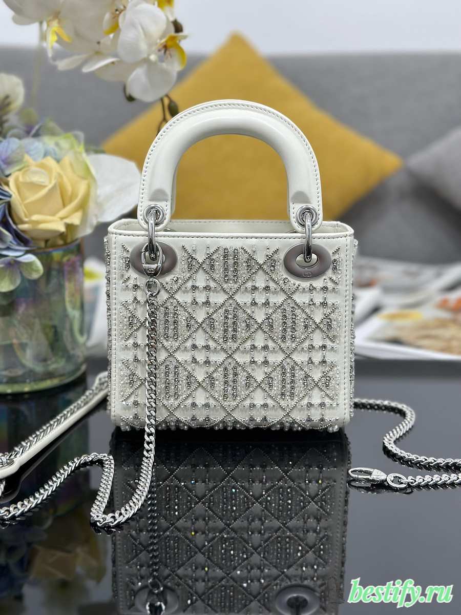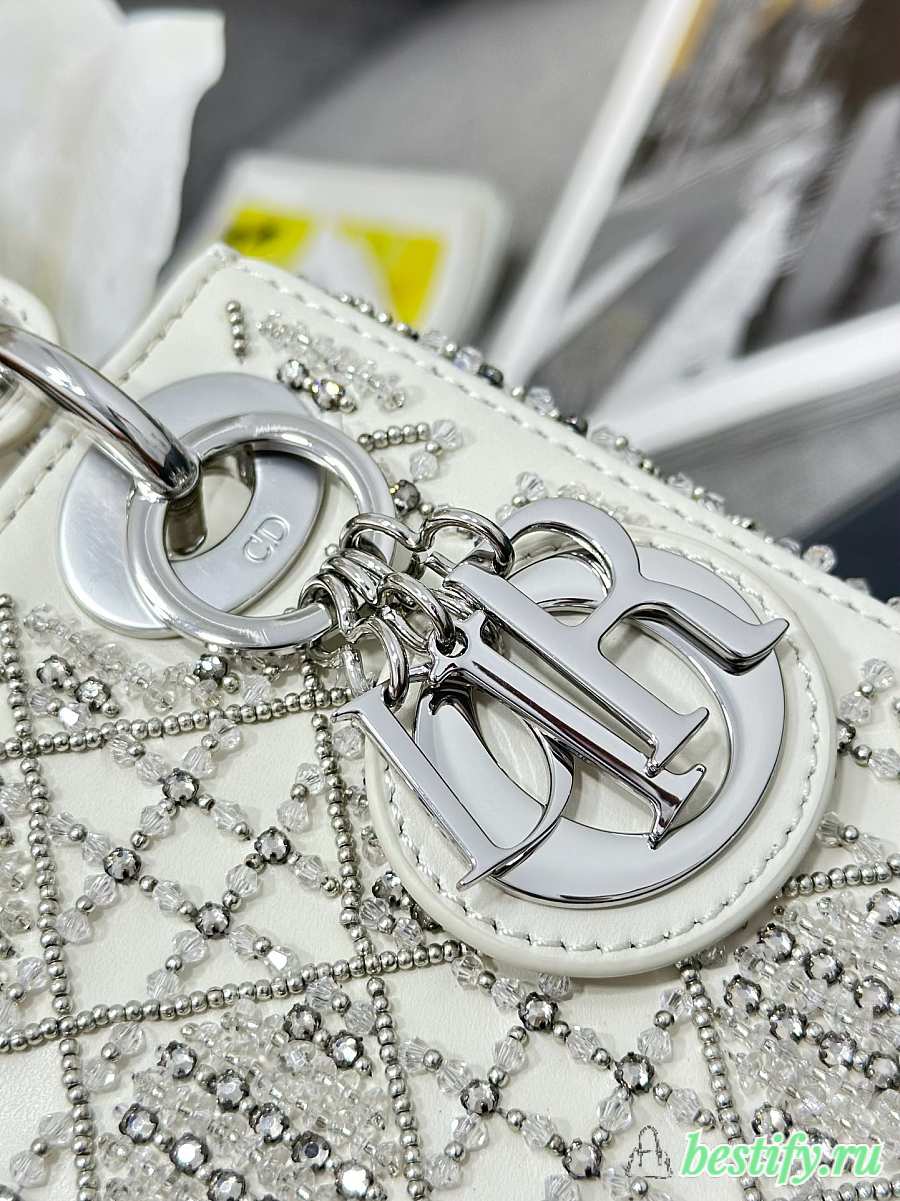 Dior Mini Lady Bag Latte Calfskin Embroidered with beads and strass - 17cm