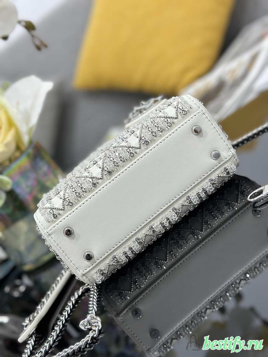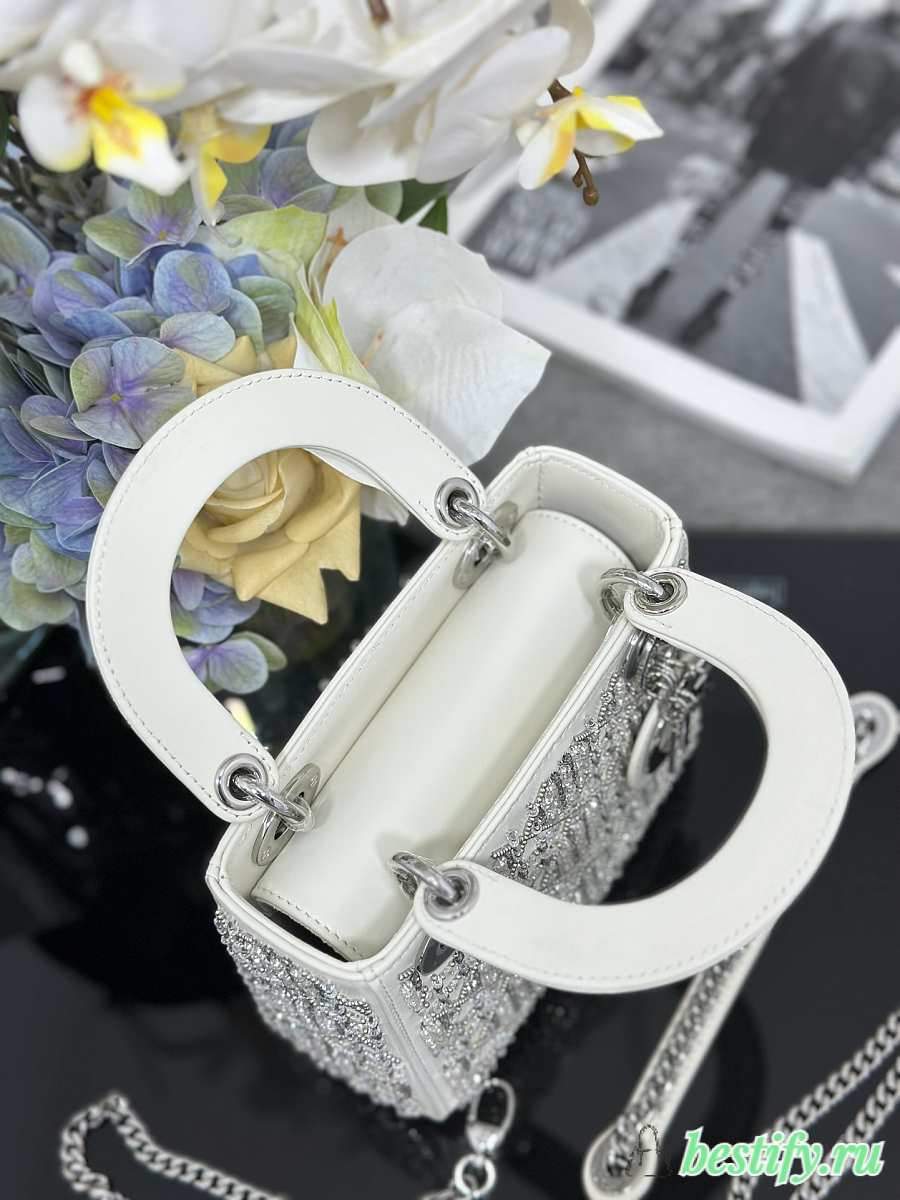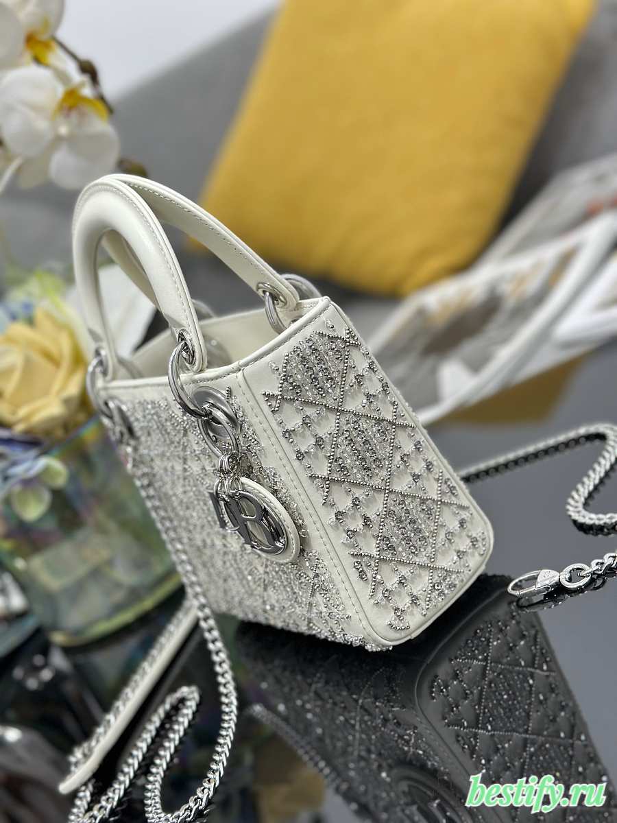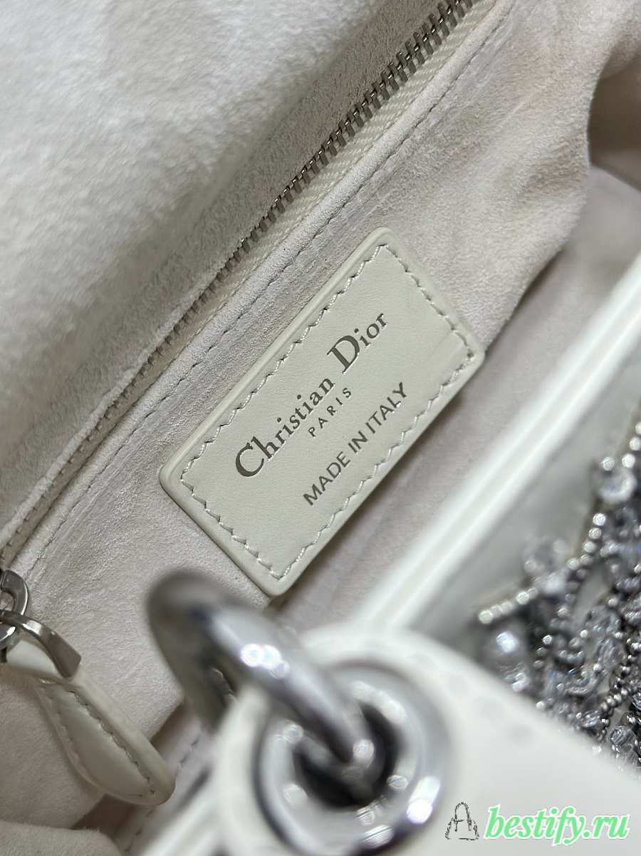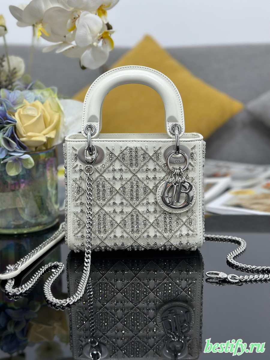 Dior Mini Lady Bag Latte Calfskin Embroidered with beads and strass - 17cm