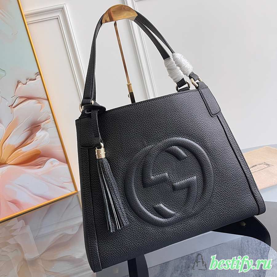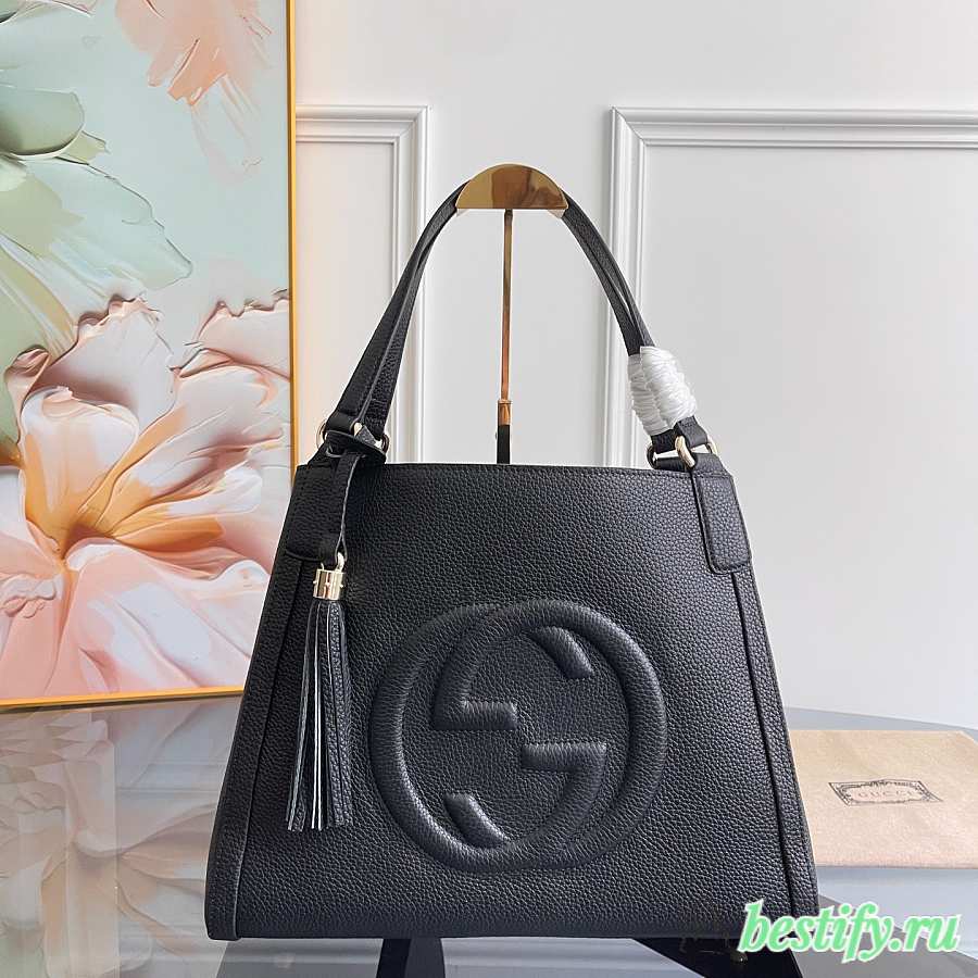 Gucci Large Soho Tote Bag Women leather Shoulder Bag Black