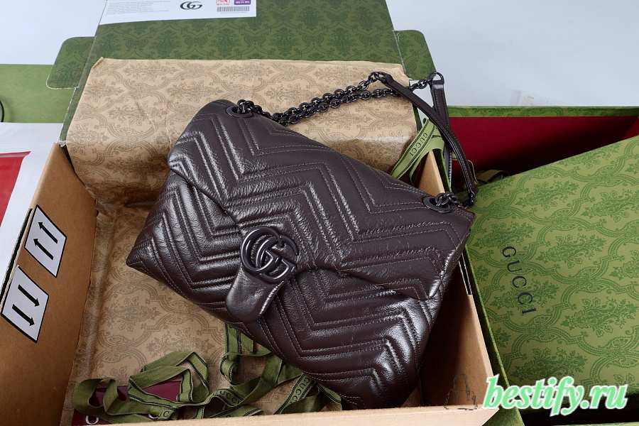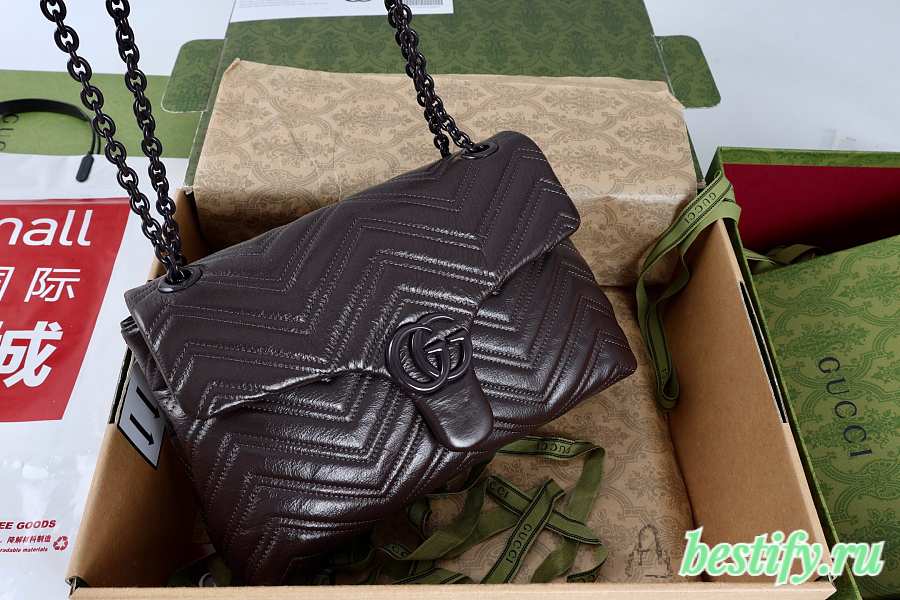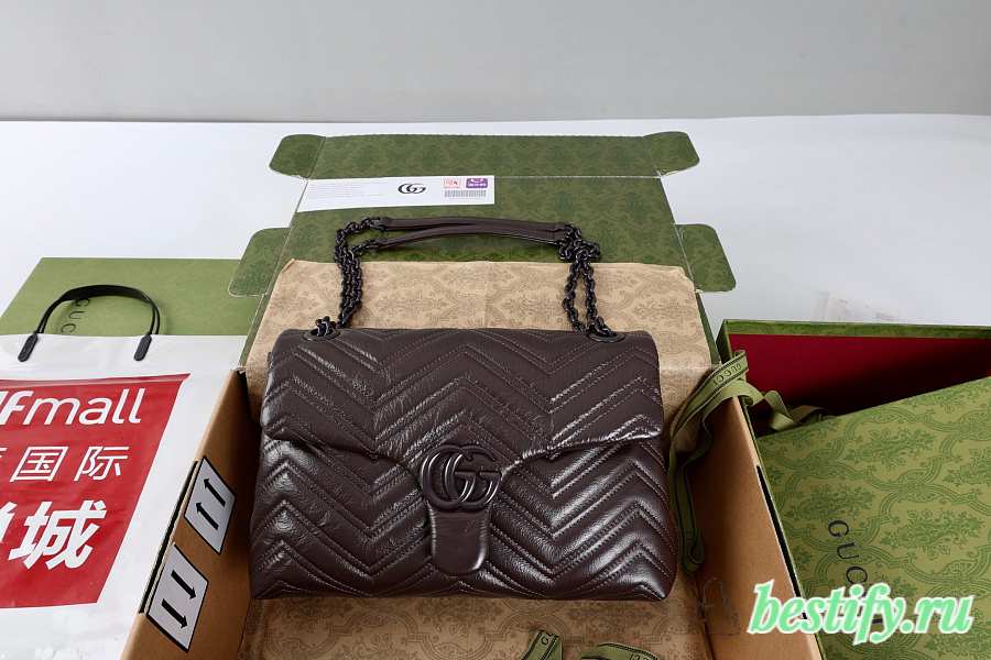 Gucci Marmont medium shoulder bag dark brown leather-31*17*8cm