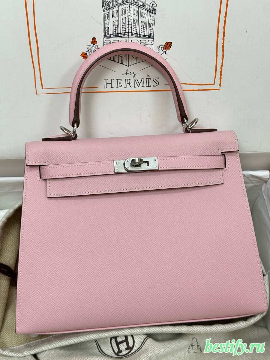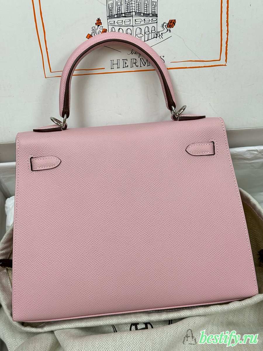 Hermes Kelly Epsom Rose Sakura Silver Hardware 25cm