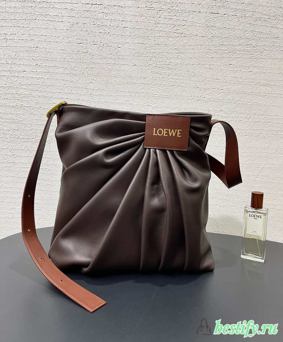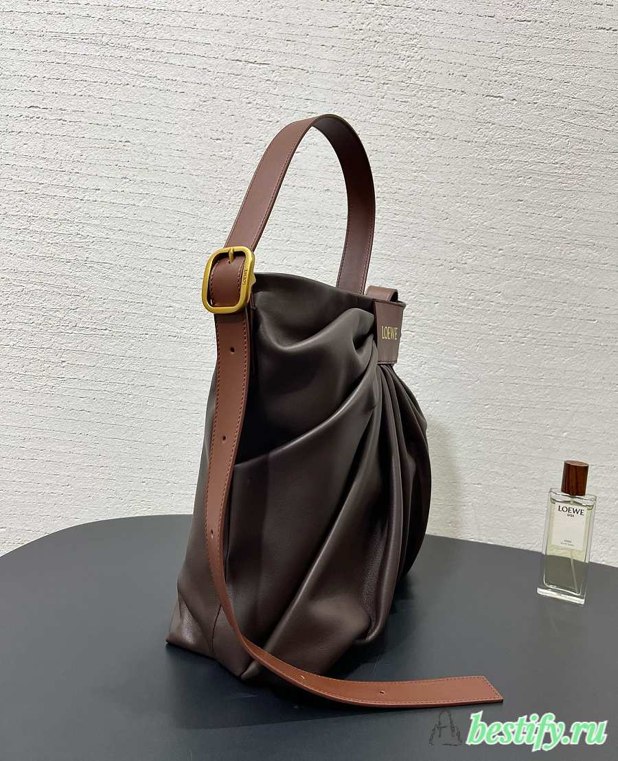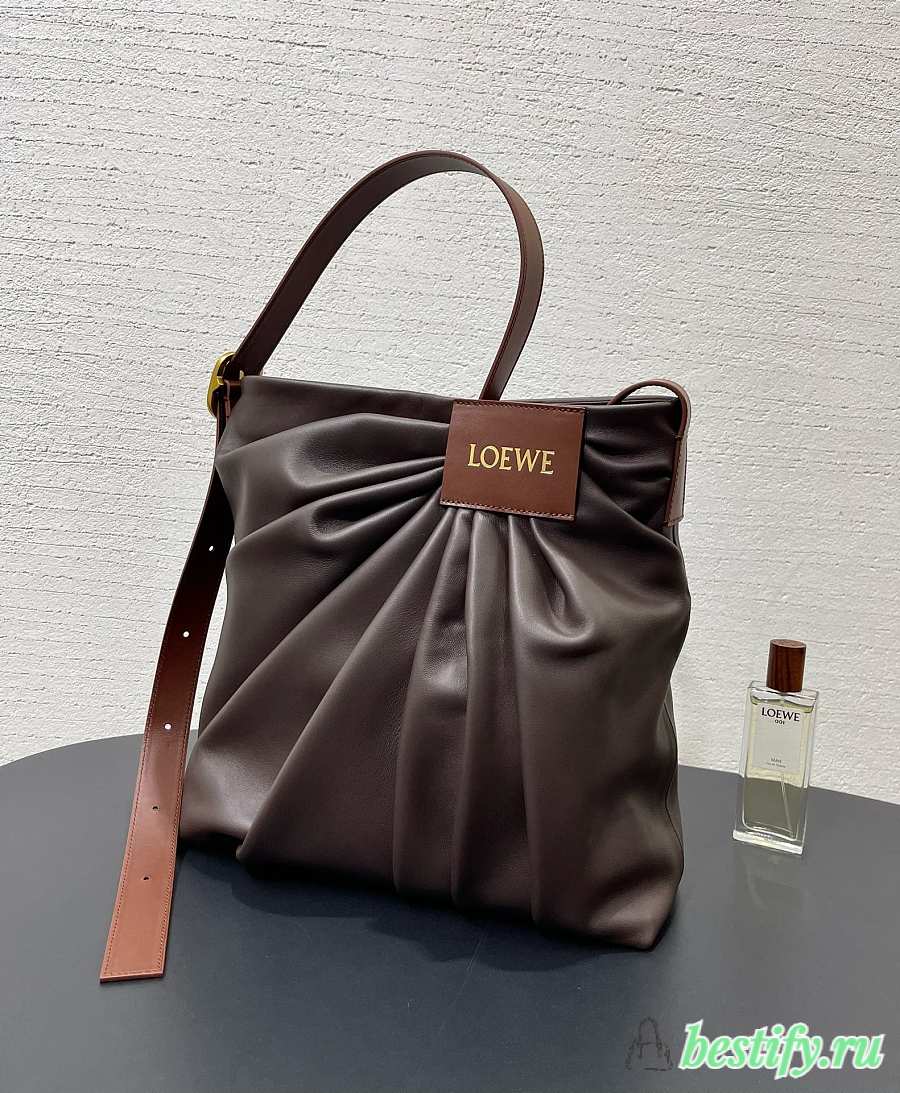 Loewe Draped Tote In Mellow Nappa Lambskin Brown - 30x29x14cm