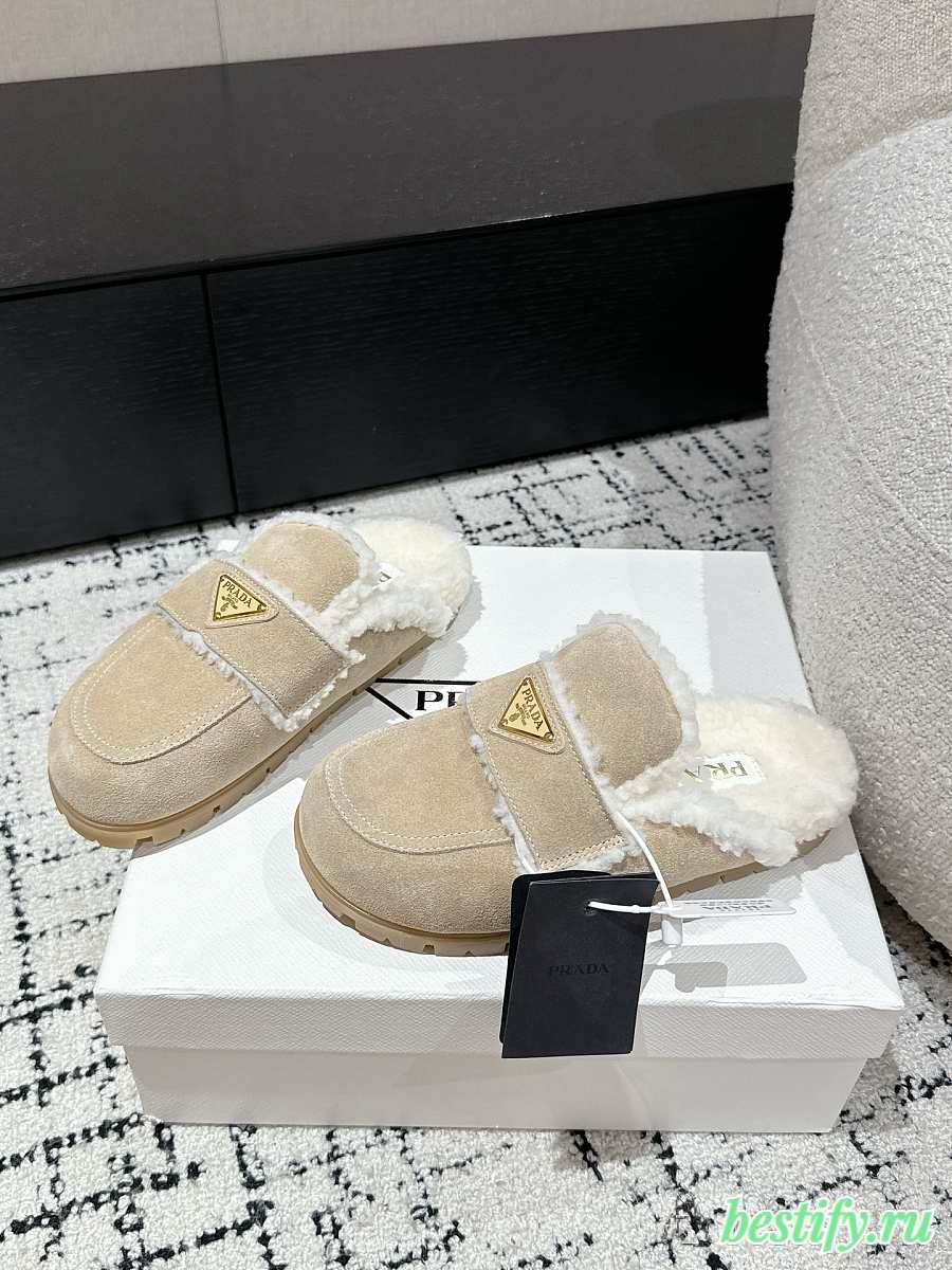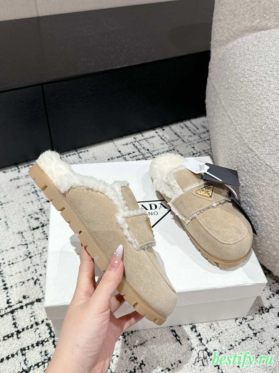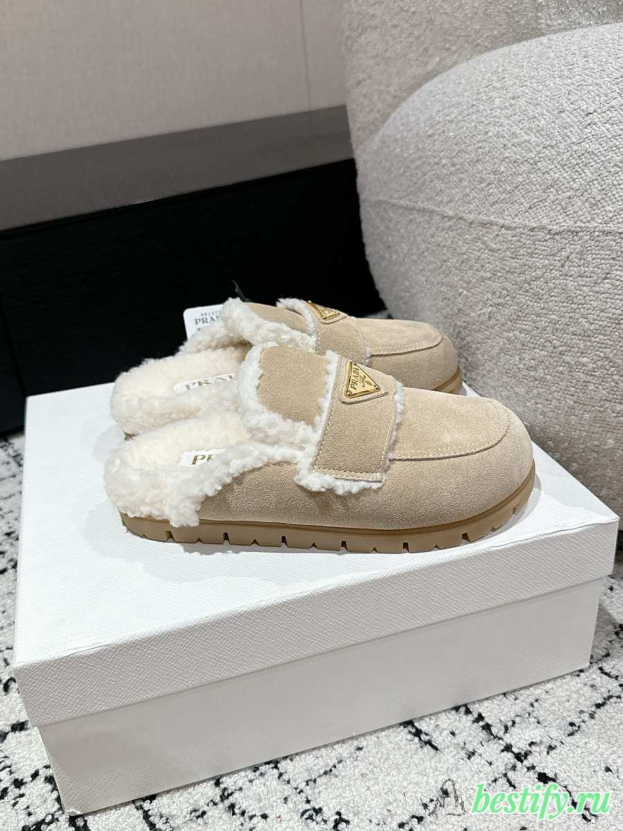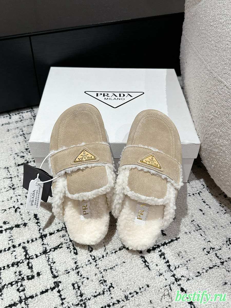 Prada Suede and Shearling Mules in Apricot