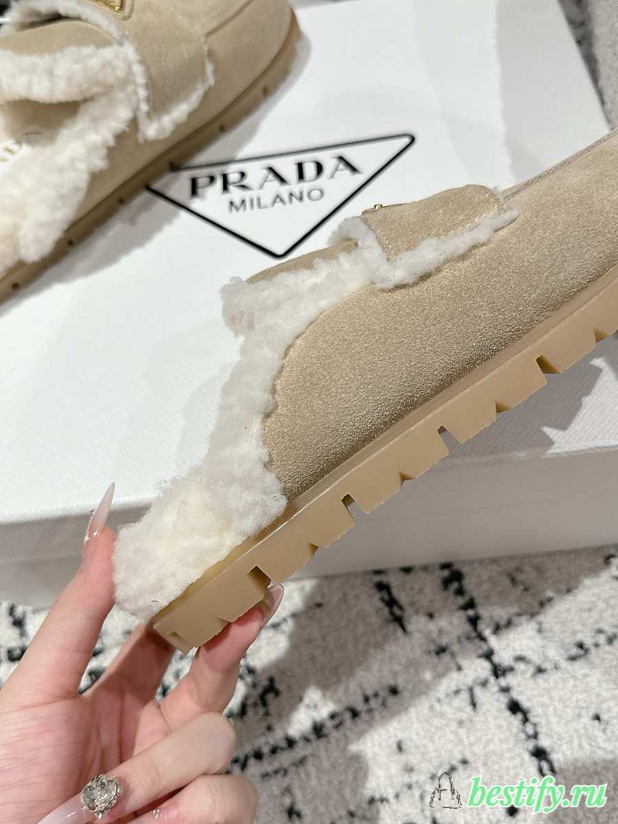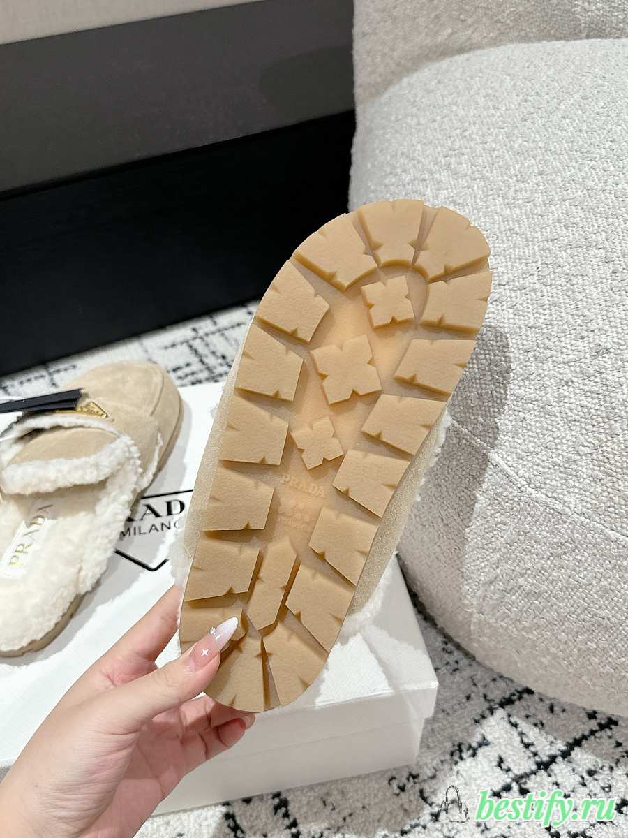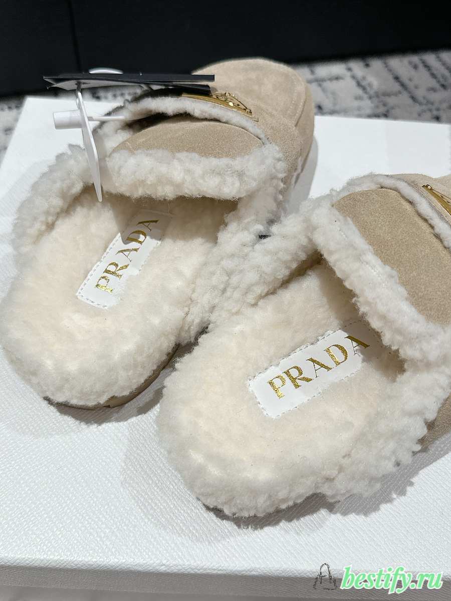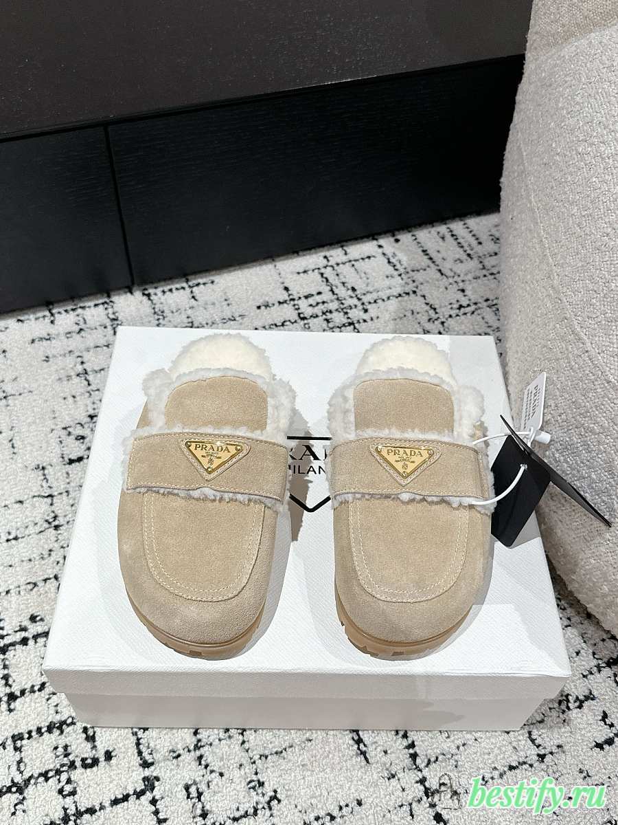 Prada Suede and Shearling Mules in Apricot