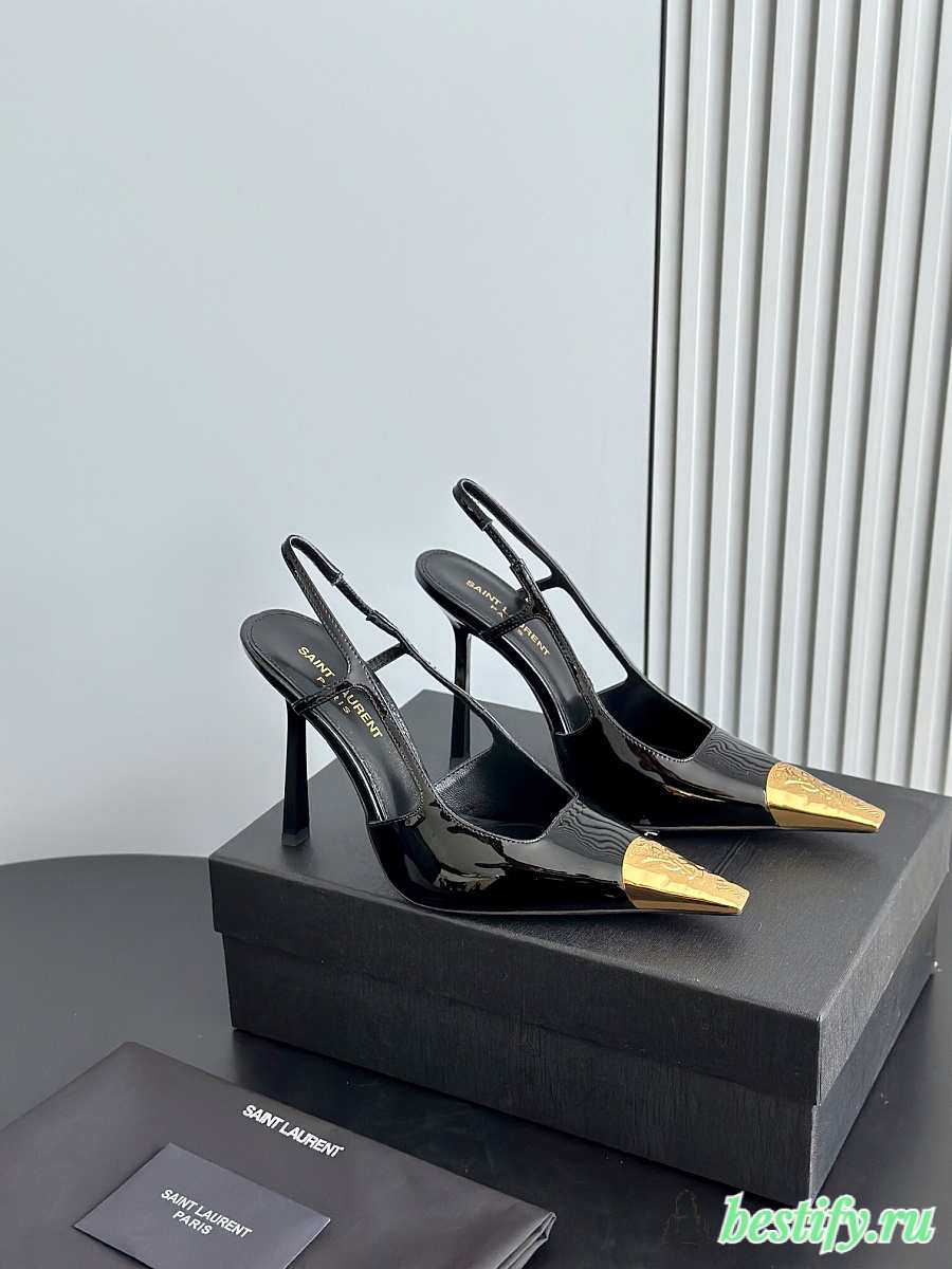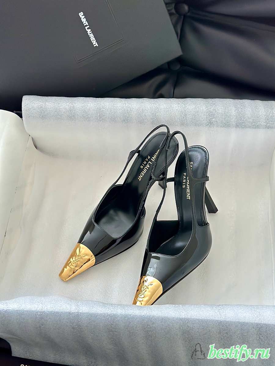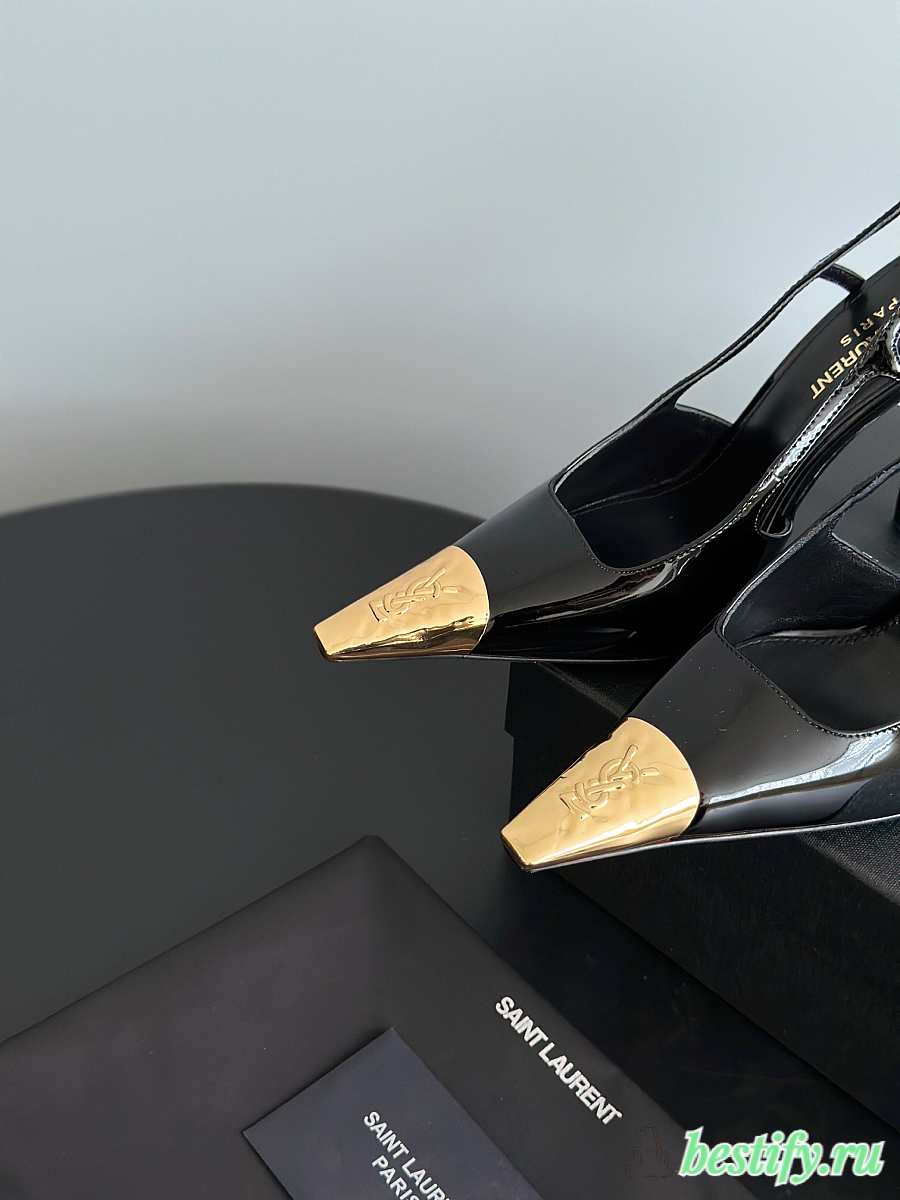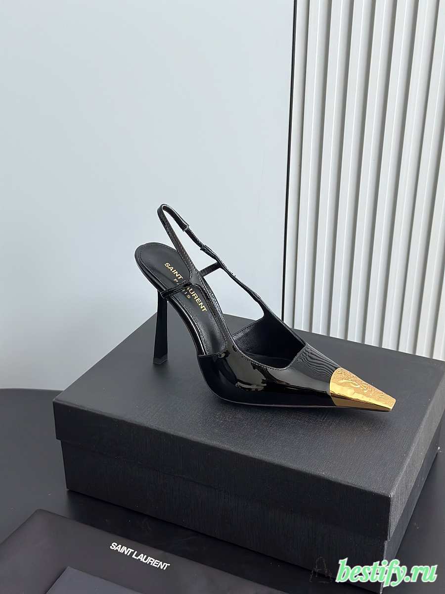 YSL JEANNE slingback pumps in smooth leather BLACK AND GOLD 110mm