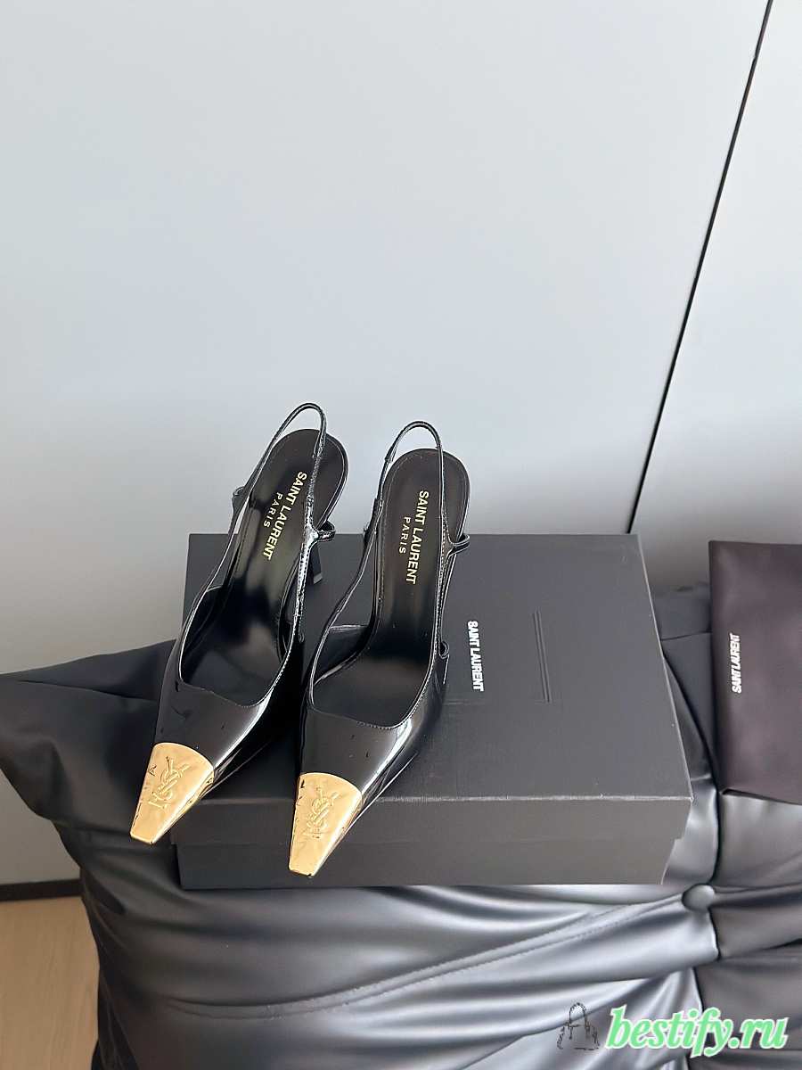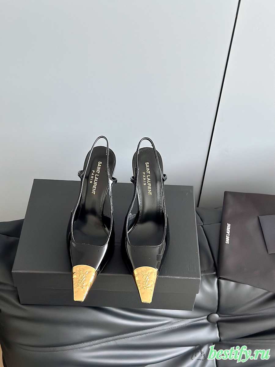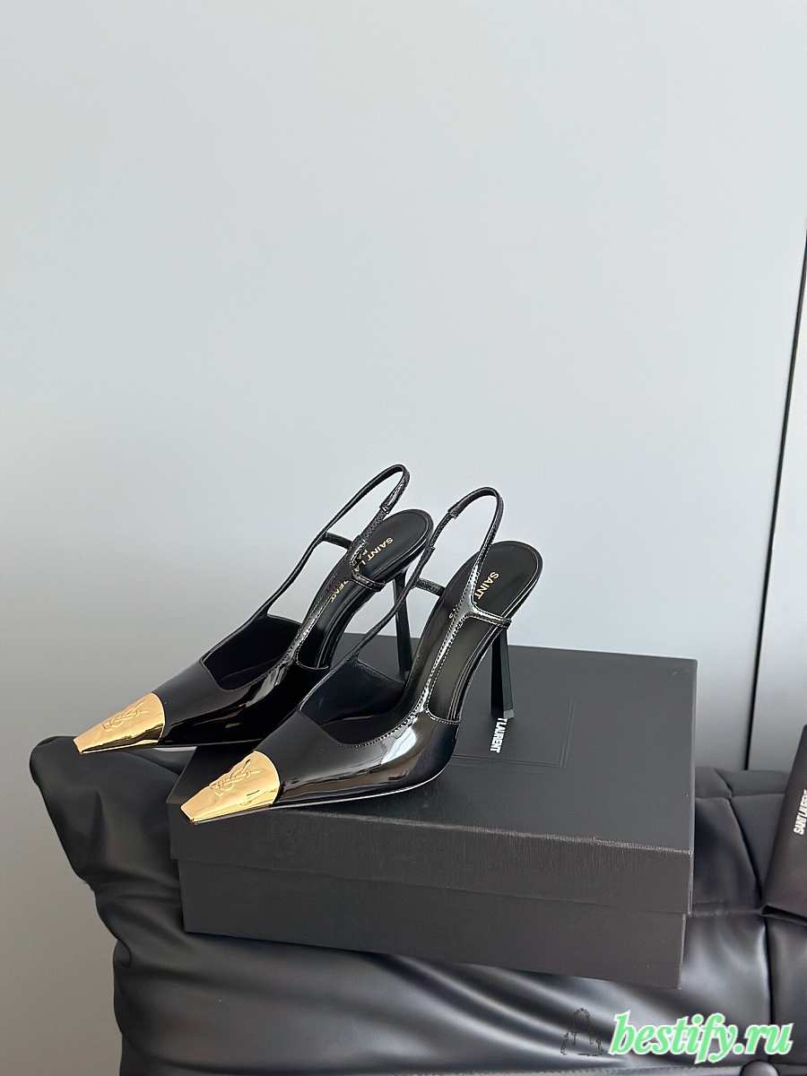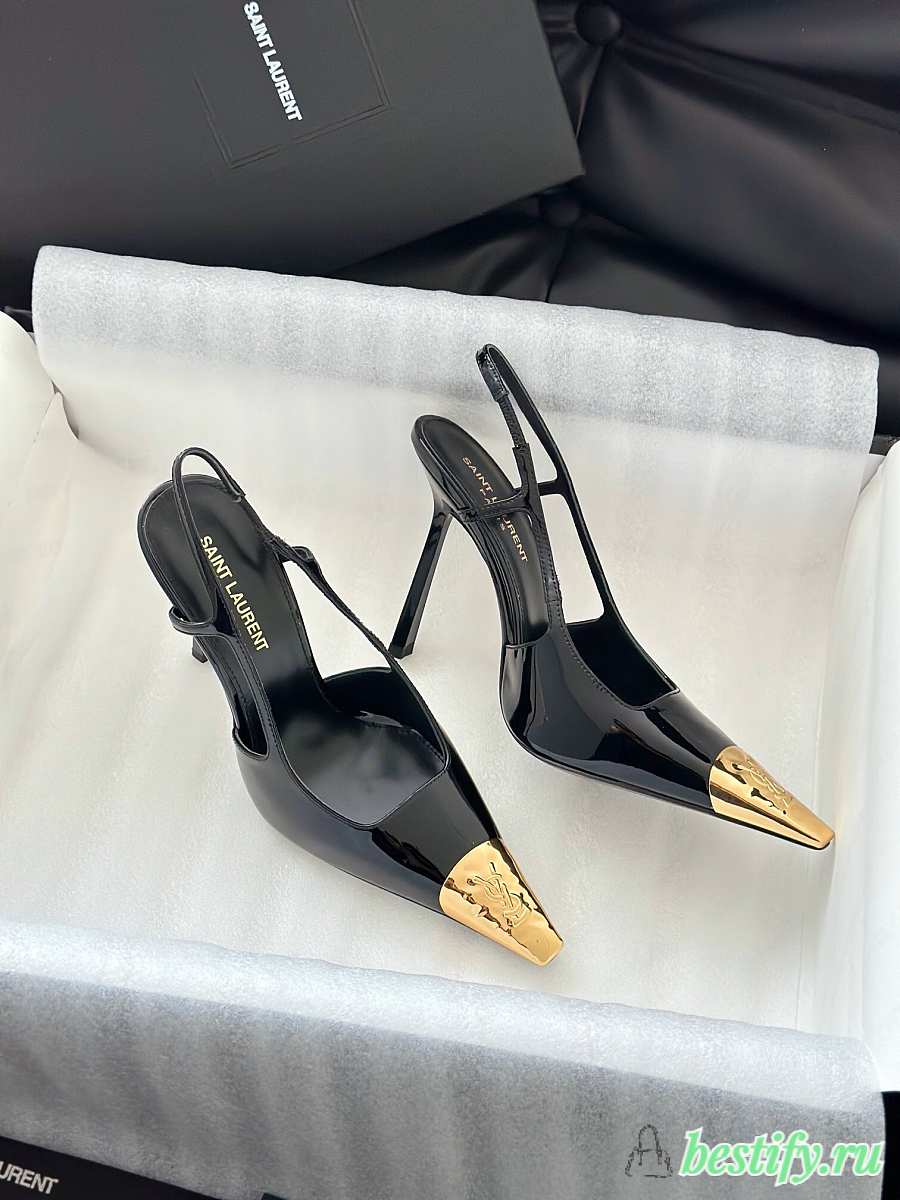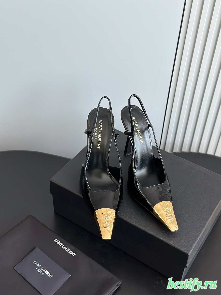 YSL JEANNE slingback pumps in smooth leather BLACK AND GOLD 110mm
